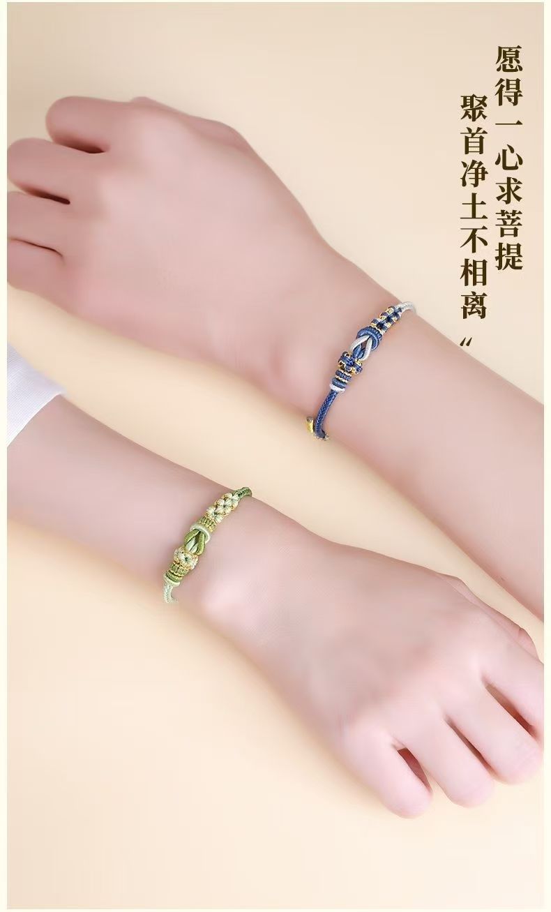 文昌は上陸のブレスレットの赤い縄を結びます。