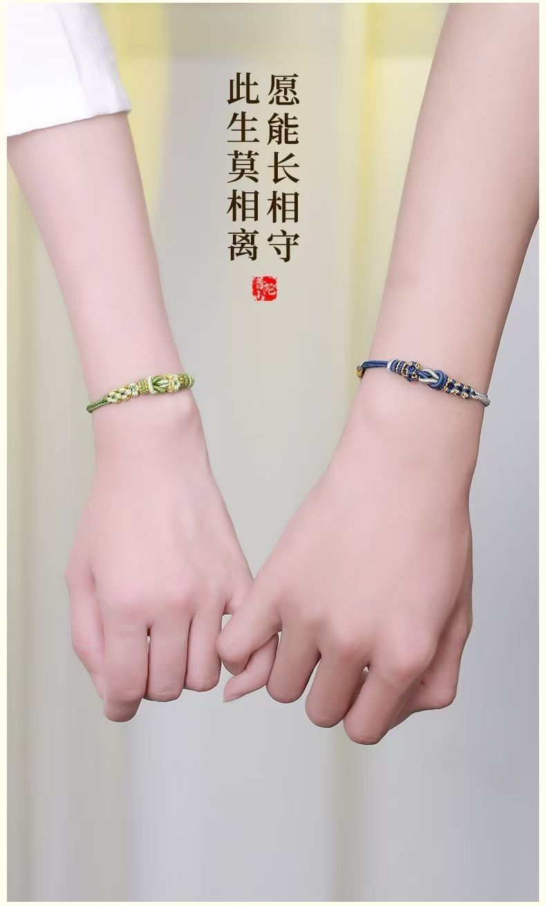 普陀山相伴相守情侣编织同心结手绳本命年男女七夕情人节爱情礼物