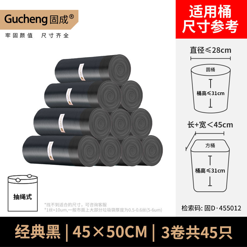 ゴミ袋家庭用手提げ厚手ビニール袋キッチン黒色巾着式ゴミ袋実恵装特厚
