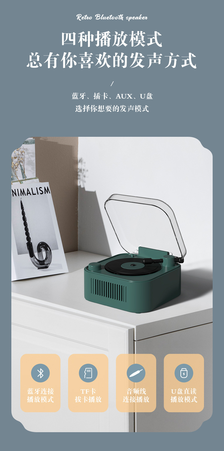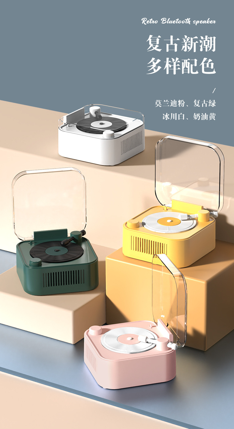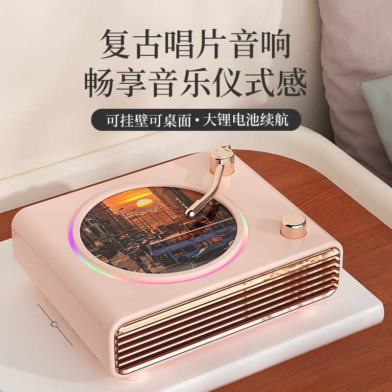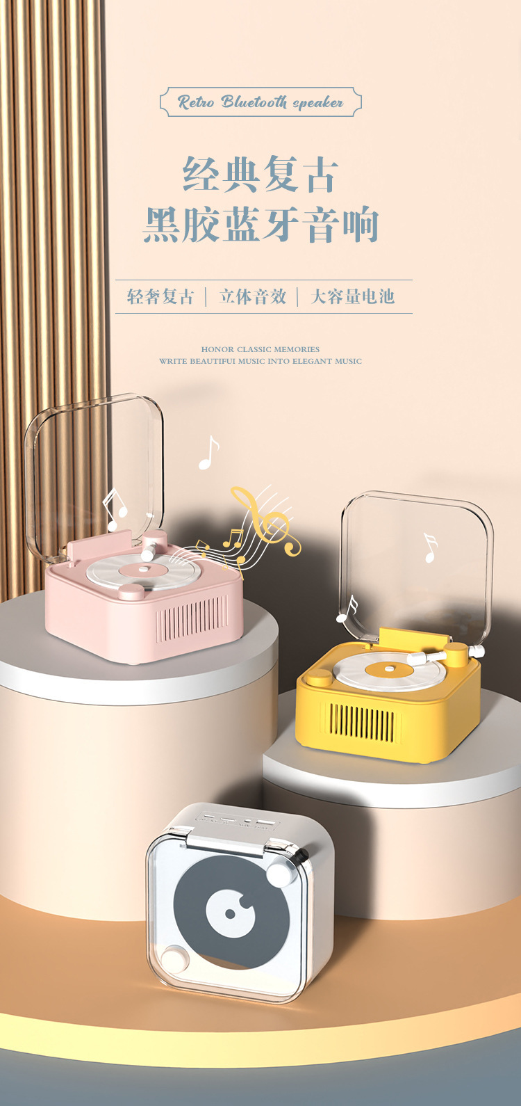 創意新品レトロターンテーブル無線bluetoothスピーカー携帯カードミニレコード機デスクトップ創意置物プレゼント