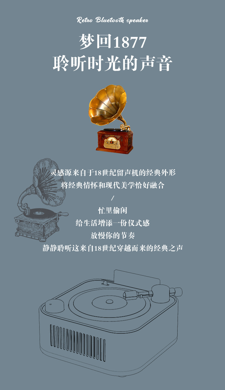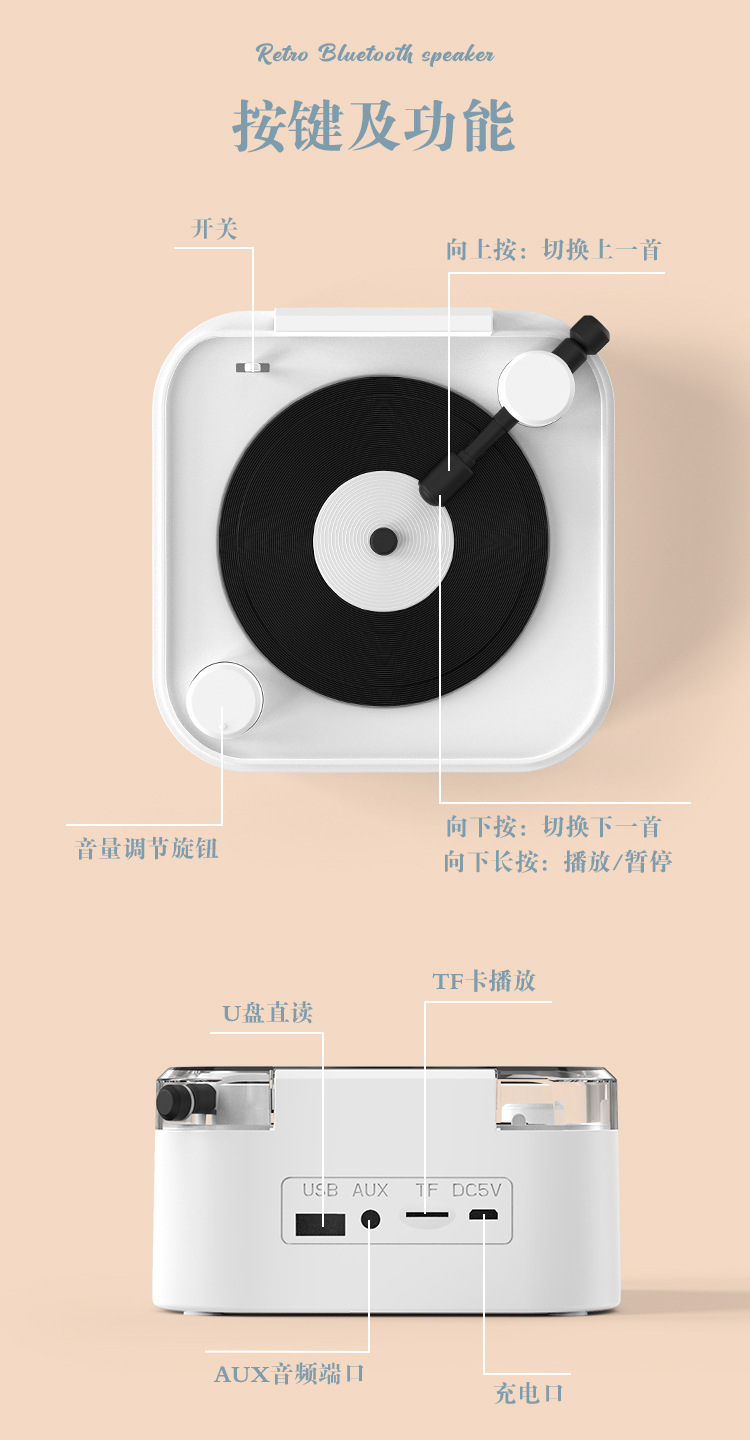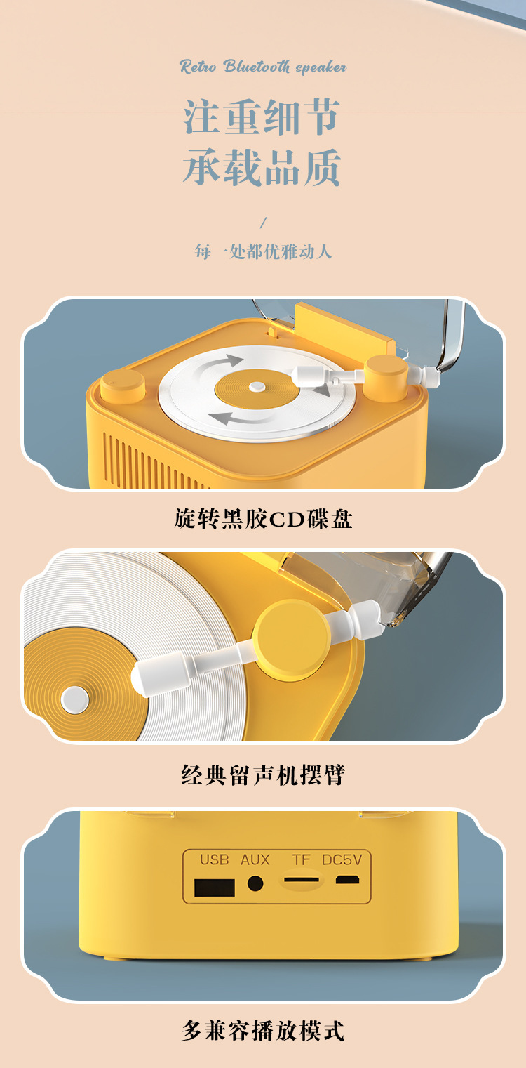 創意新品レトロターンテーブル無線bluetoothスピーカー携帯カードミニレコード機デスクトップ創意置物プレゼント