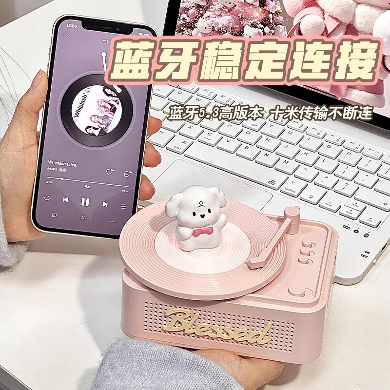 星月雰囲気灯ドーパミンbluetoothスピーカー誕生日プレゼント黒ゴムレコード機高音質小型無線オーディオ