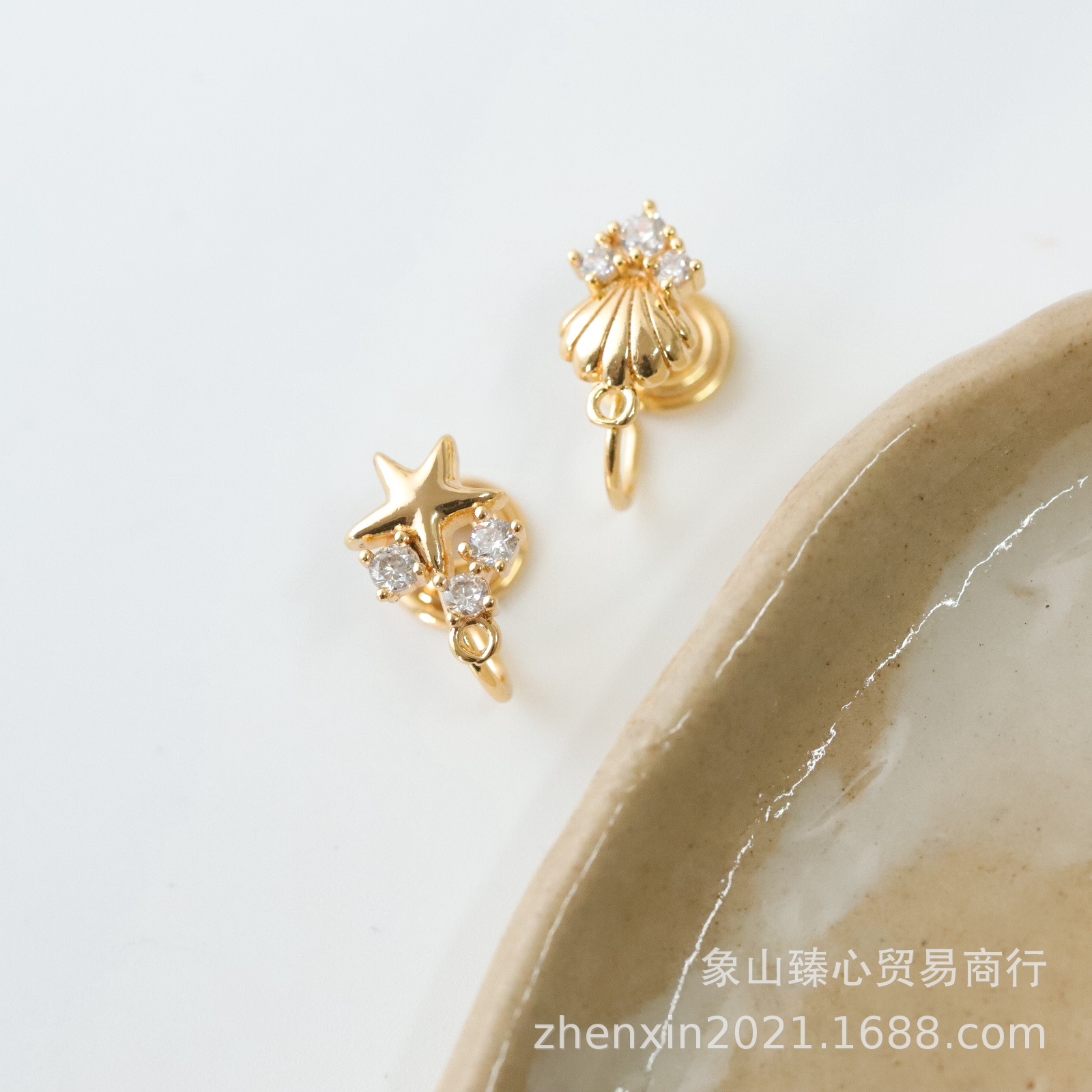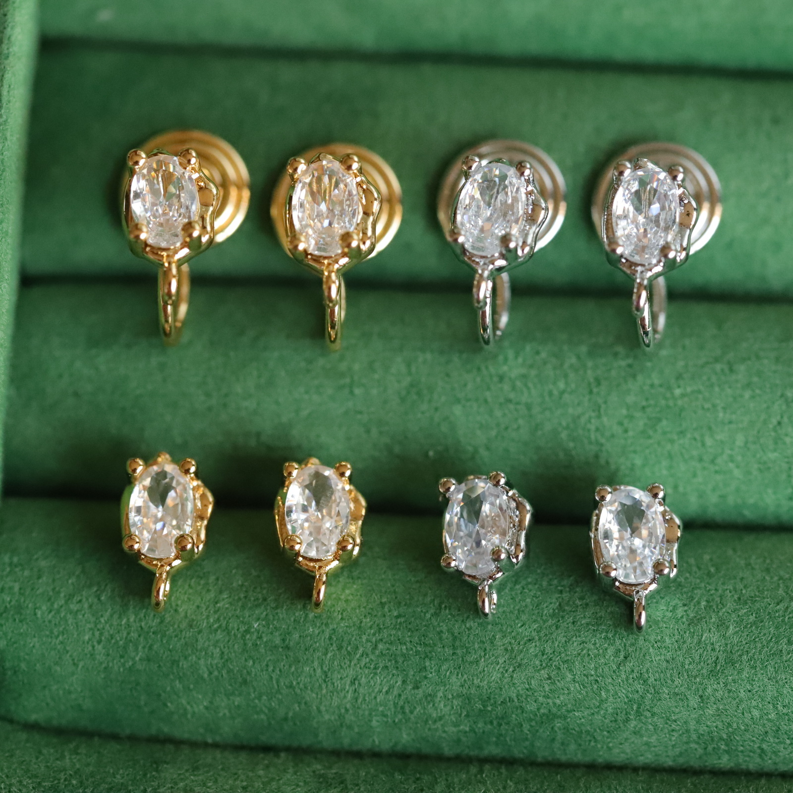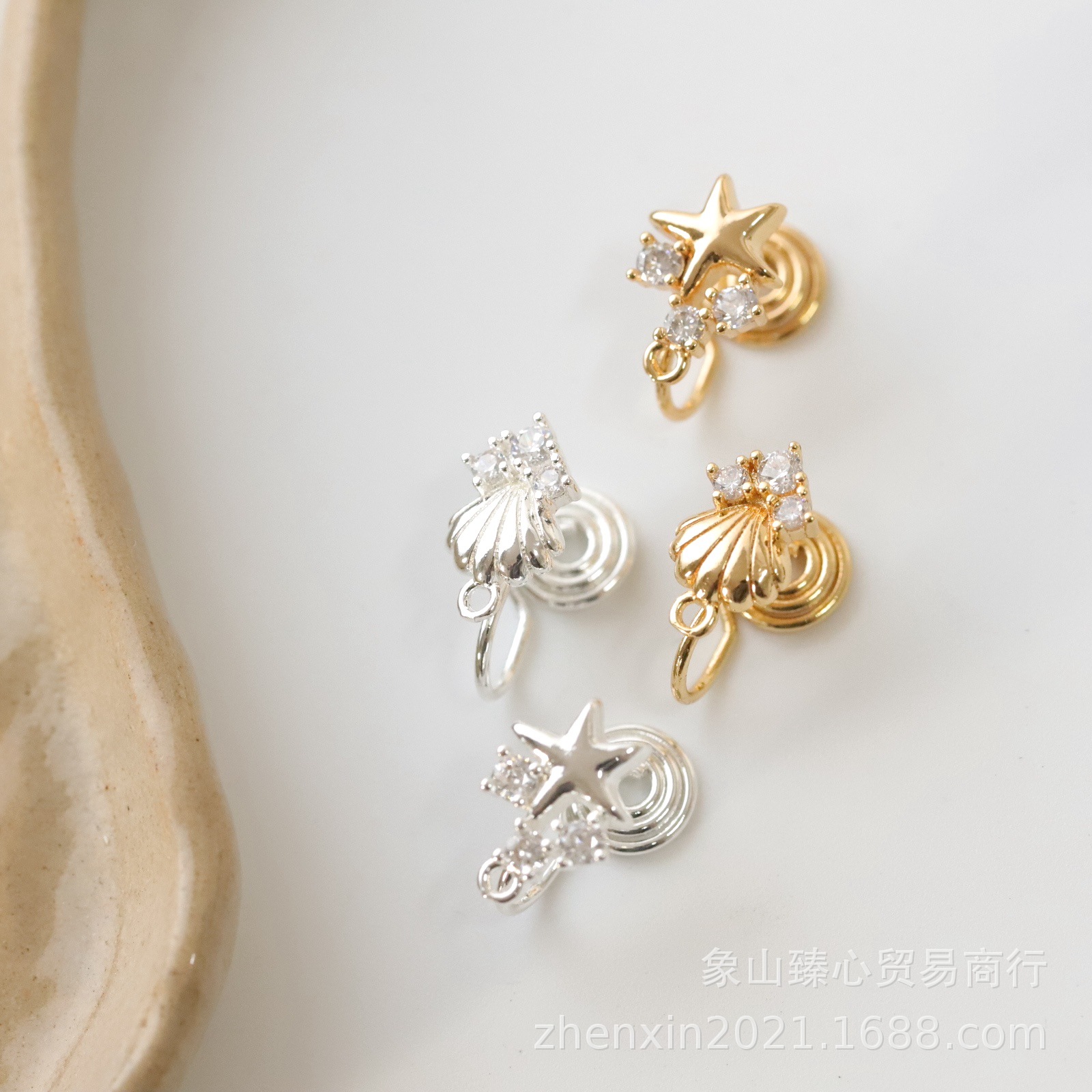 保色铜镀真金+人造锆石+925银耳针&蚊香盘耳夹