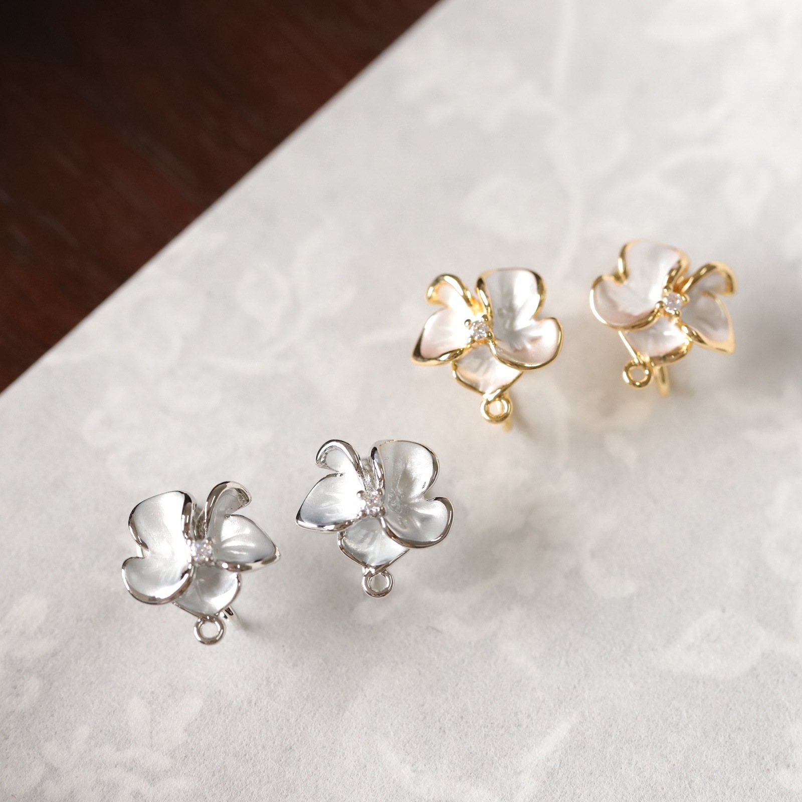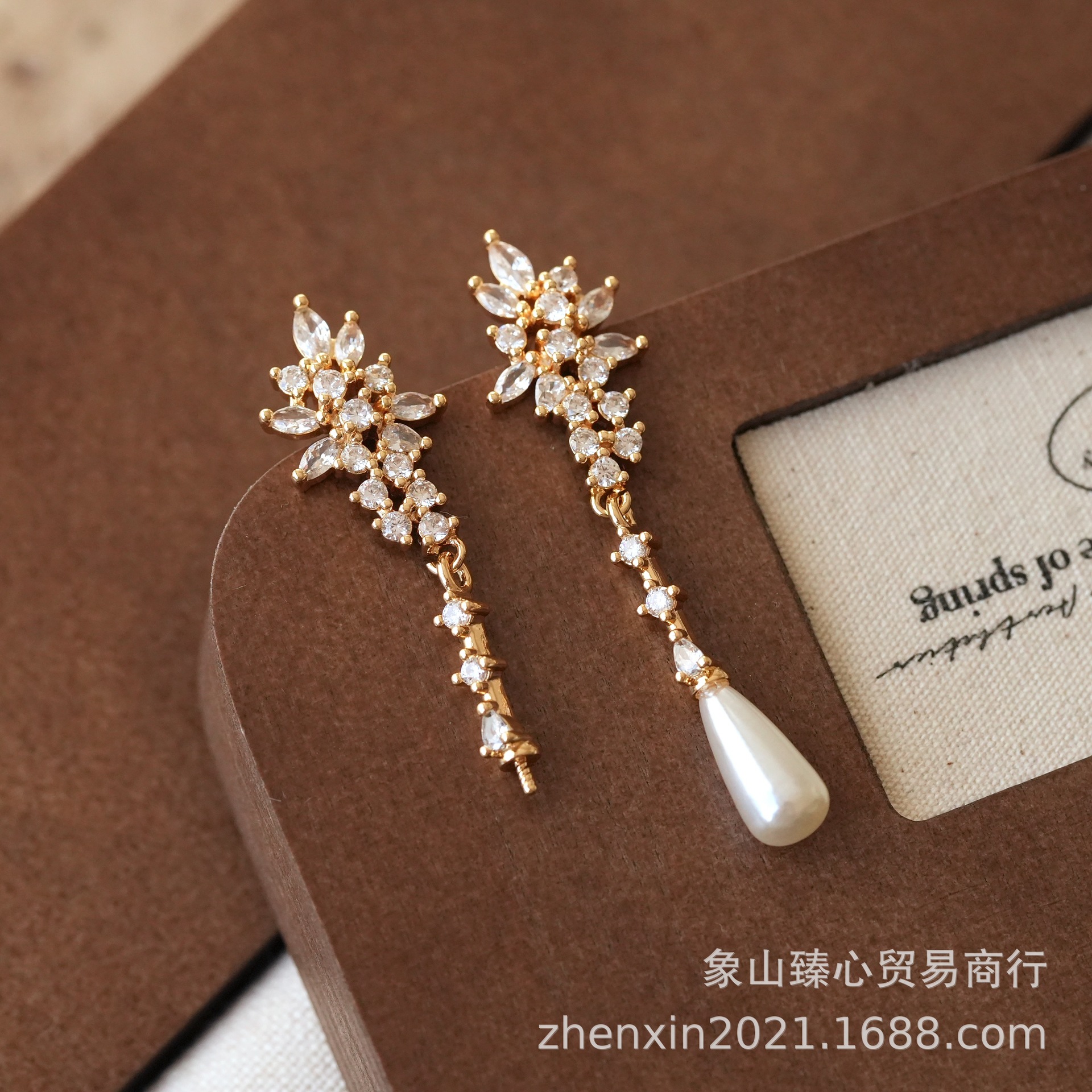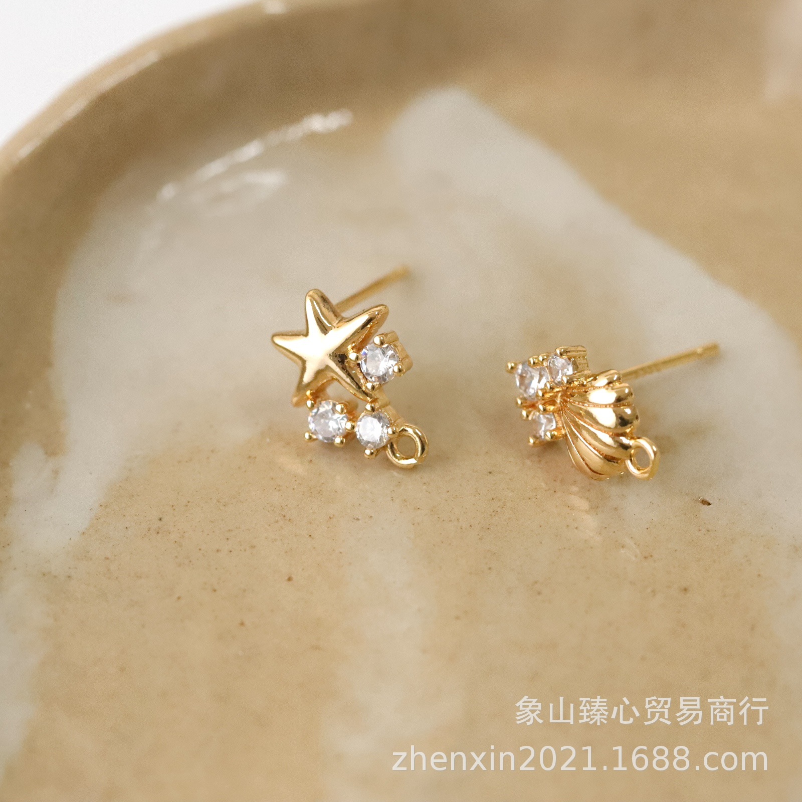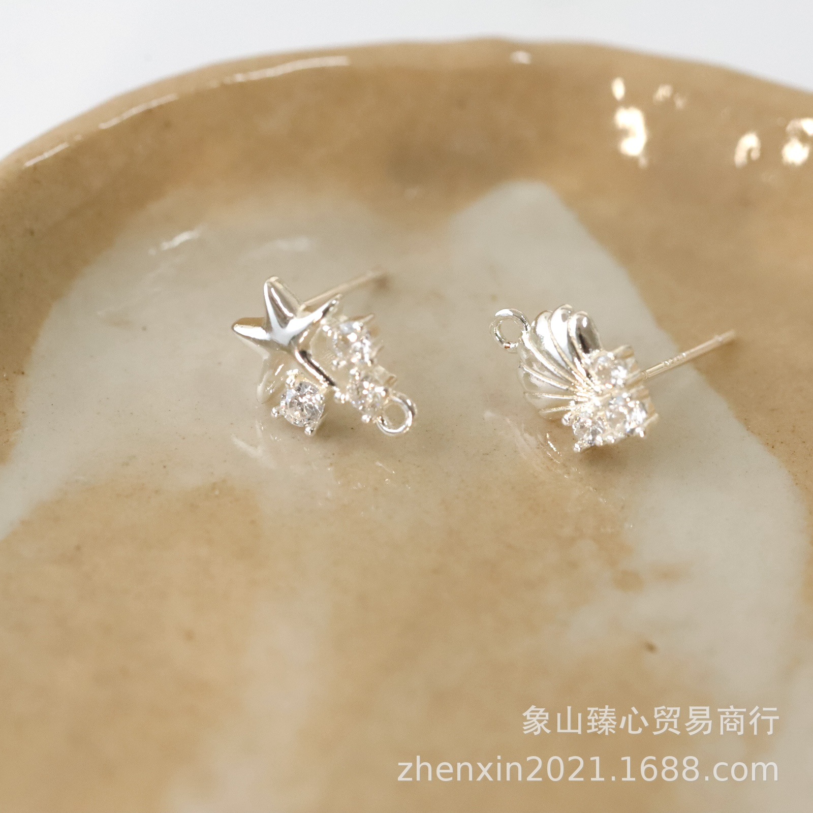 保色铜镀真金+人造锆石+925银耳针&蚊香盘耳夹