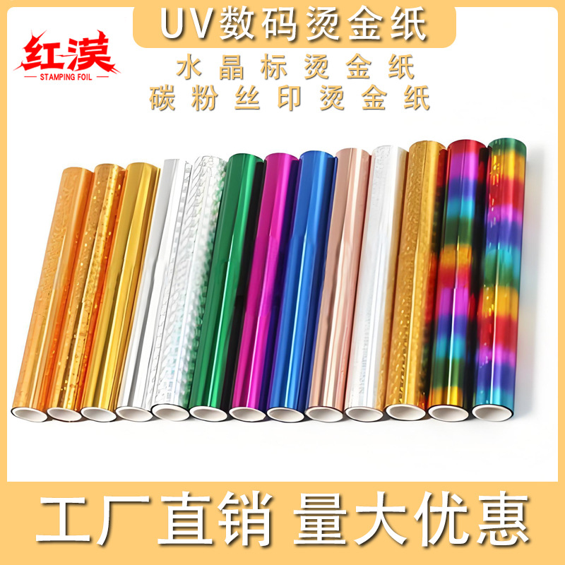 uv水晶标烫金纸定制金色彩色镭射数码冷烫转印烫金膜包装盒金箔纸