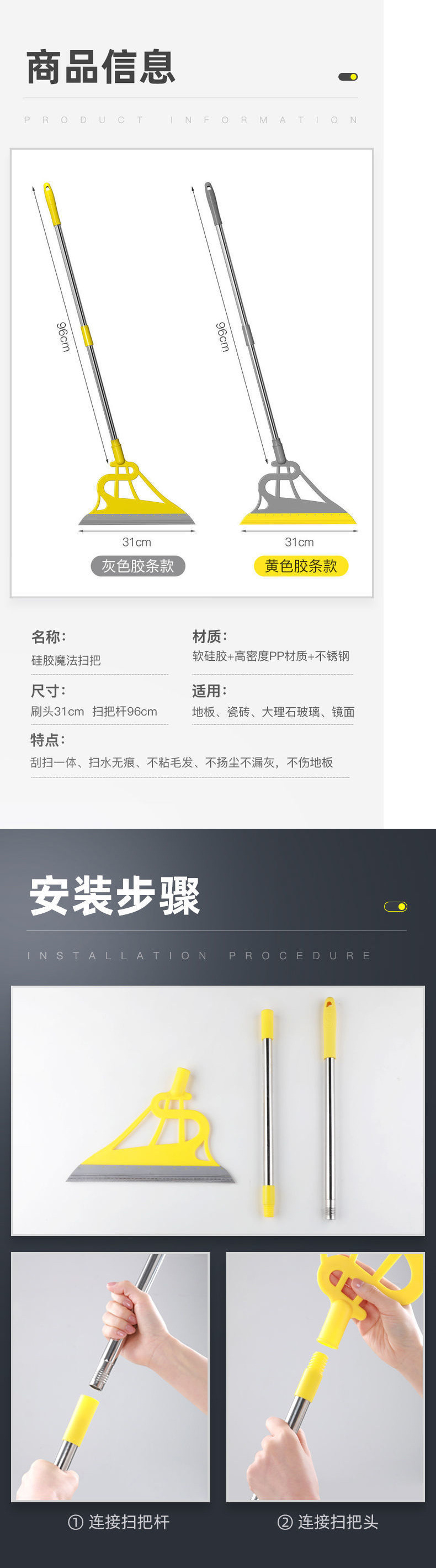 黒科技マジックスイーパー家庭用くっつかない髪ほうきリビングルームキッチントイレ両用ワイパー神器