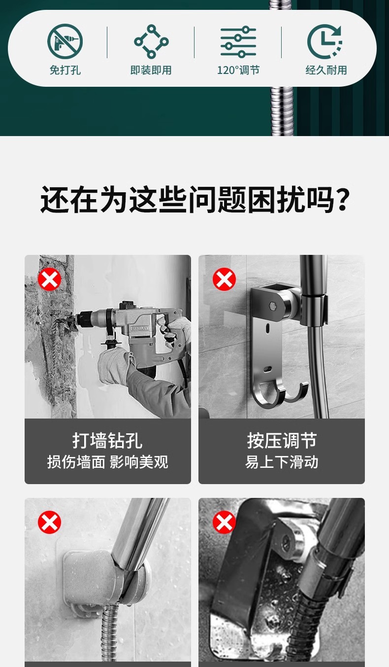 花洒支架 免打孔花洒支架 淋浴喷头固定器 浴室淋浴挂座 花洒配件
