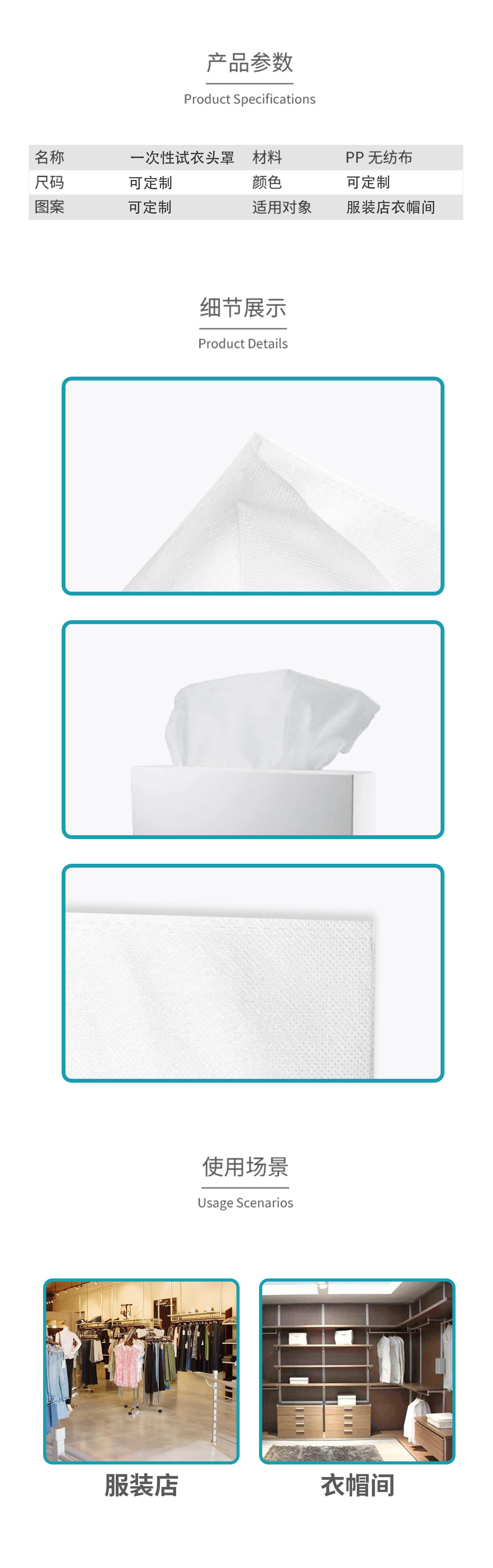 試着ヘッドカバー試着室マスク排紙式汚れ防止服不織布服装店女装買手店