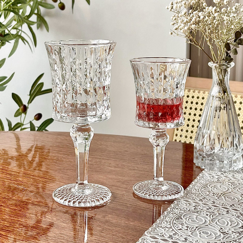 小衆insフランス透明高足カップ高顔値シャンパンカップワイングラスジュースカップヨーロッパ式レリーフグラス