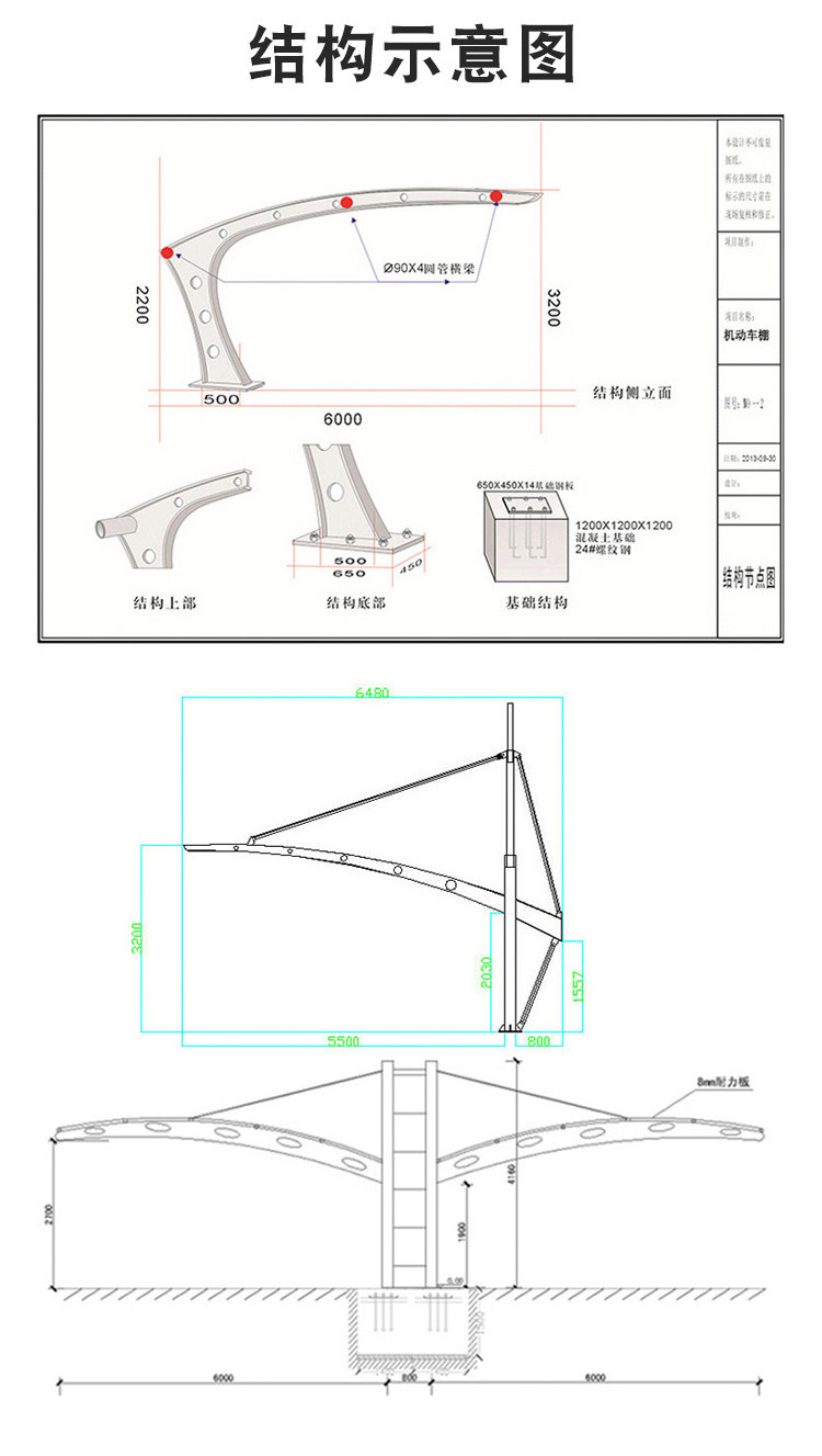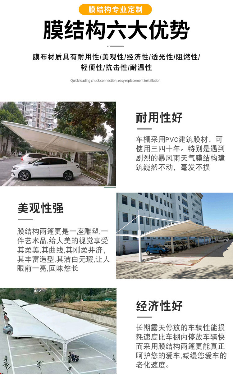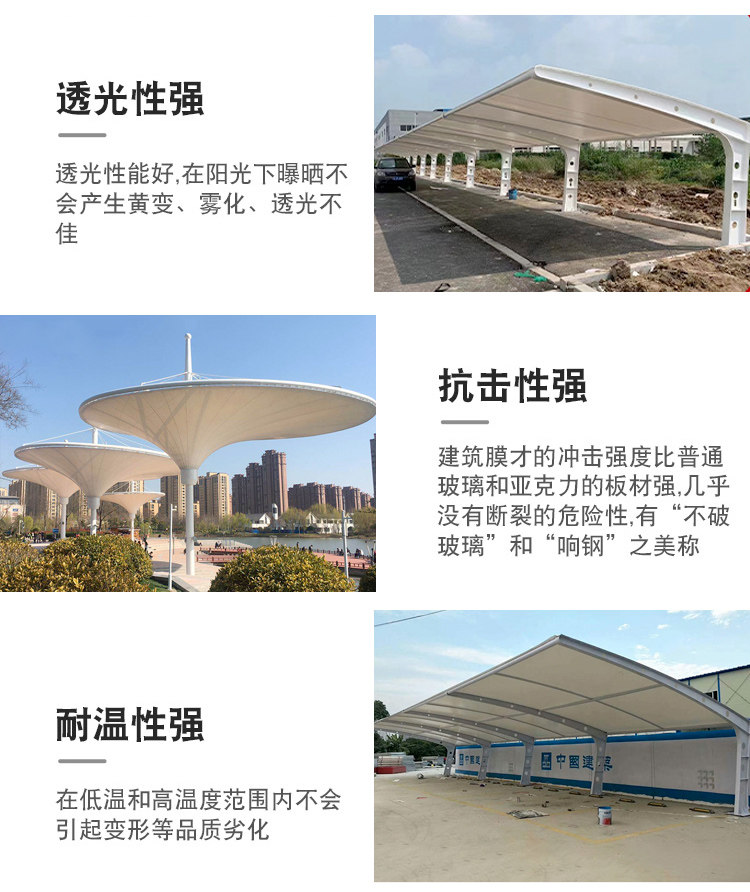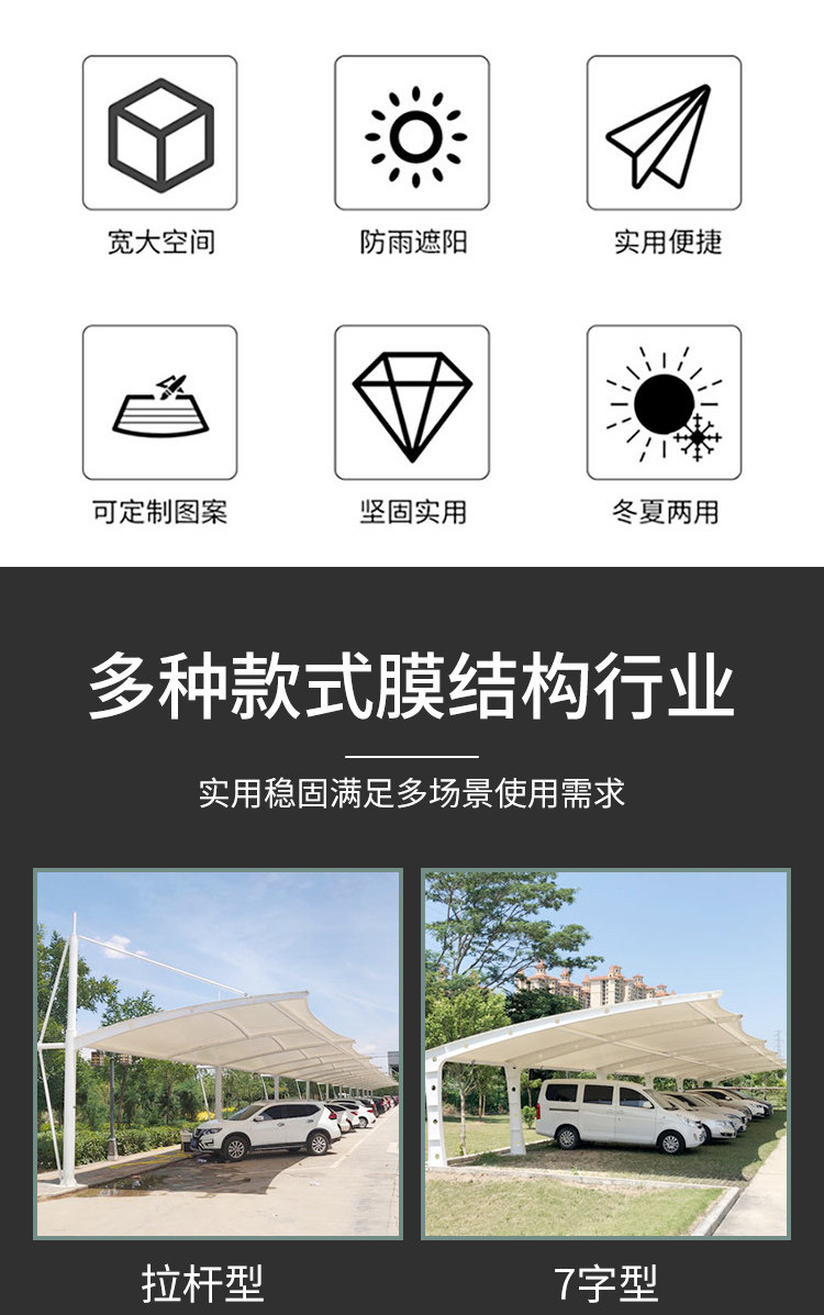 膜结构车棚汽车停车棚充电桩棚电动自行车棚张拉膜布户外耐用钢架