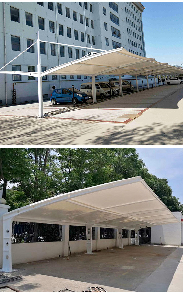 鋼構造膜構造カーシェルター、駐車場、PVDF膜屋外日よけ雨よけ、駐車場用張力膜屋外