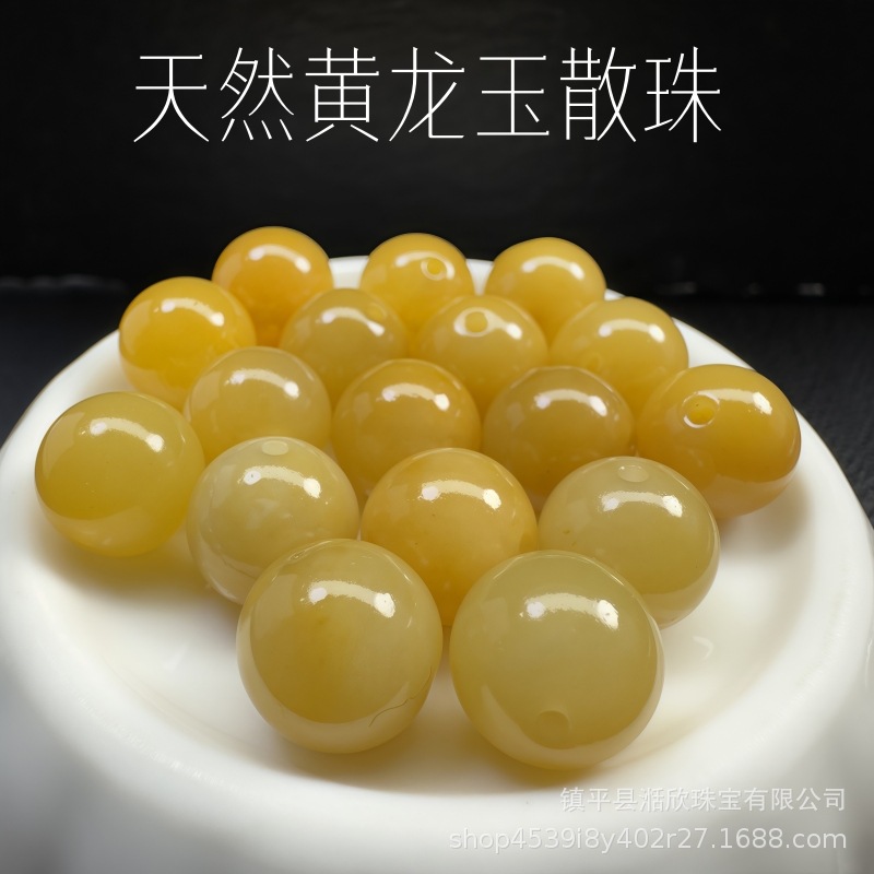 天然新疆老黄玉三彩金糸玉玉散珠黄龍玉玉diyビーズ材料アクセサリー