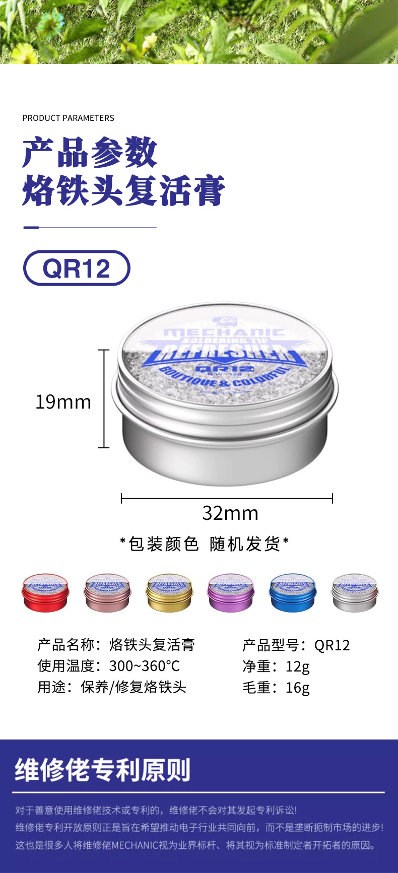 修理人QR12コテ先のイースタークリームは鉛フリーで黒層に回復し、コテ先の酸化修復クリームを使用する