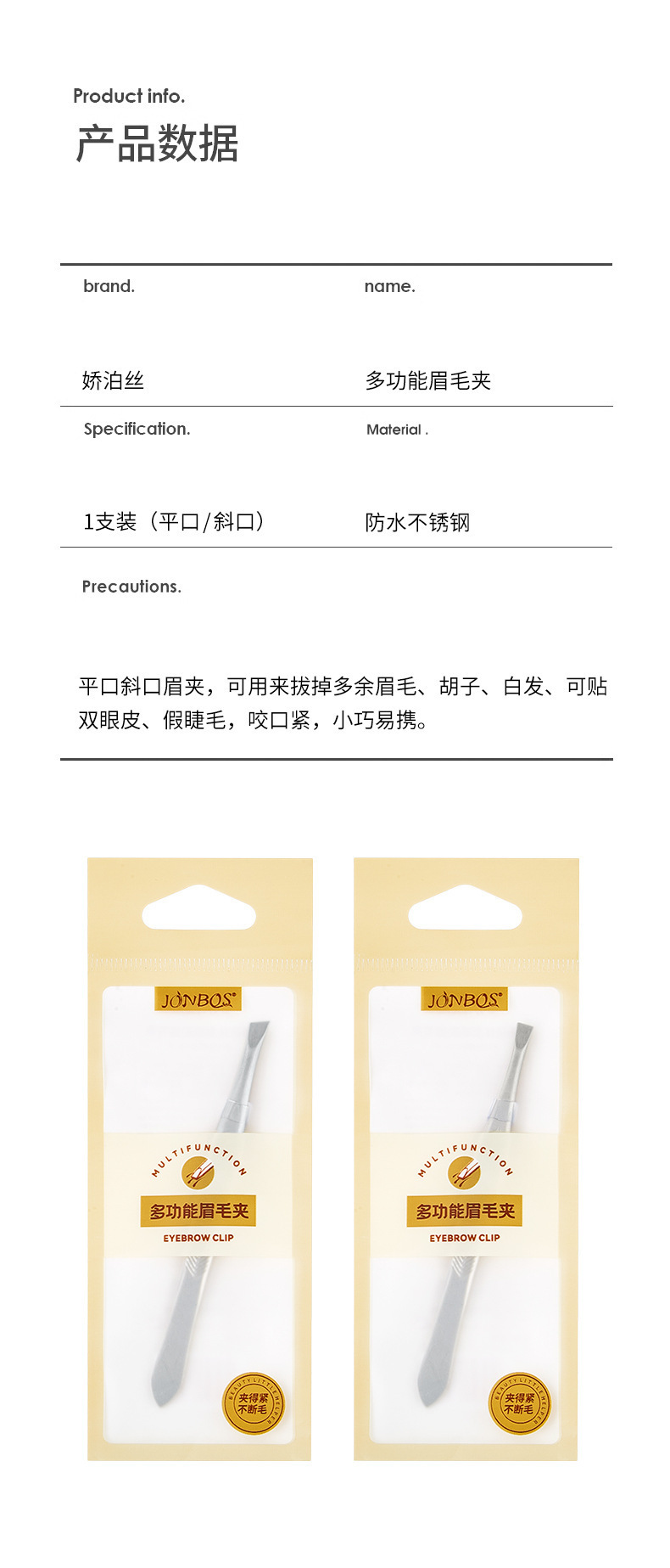 ジョナスステンレス製眉クリップ平口斜口修眉クリップ毛抜きピンセット美容化粧道具