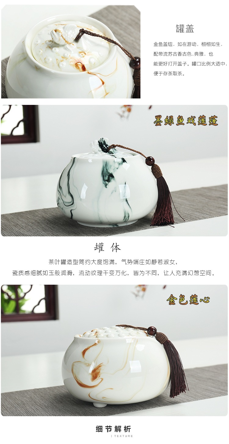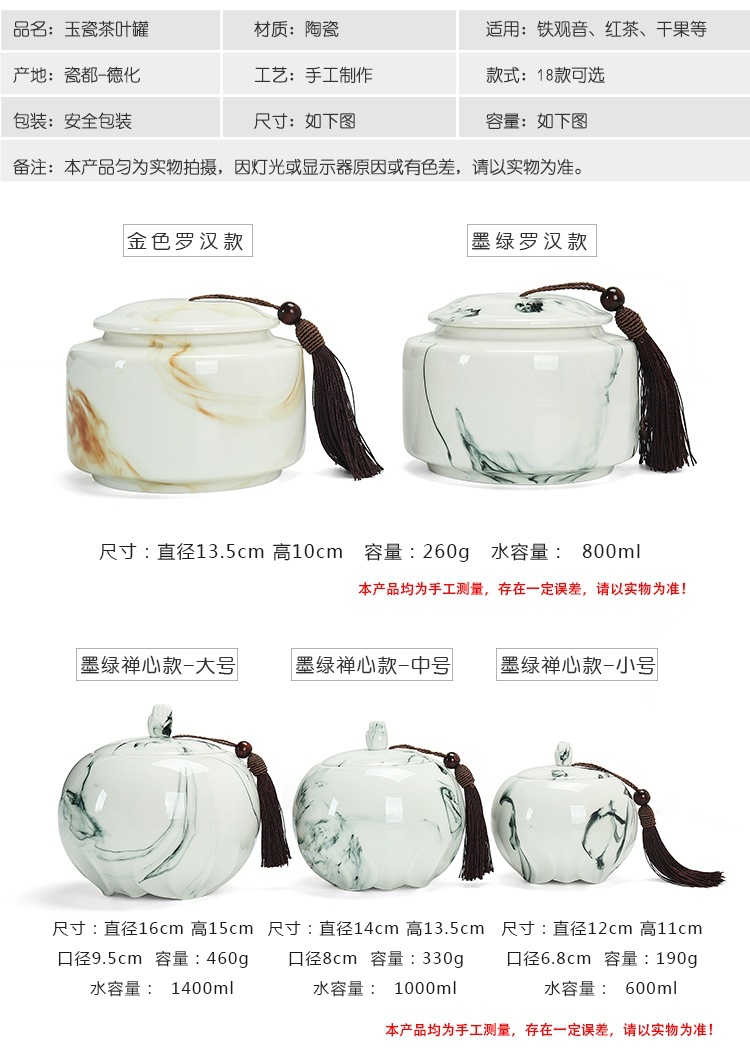 玉磁器の陶磁器のお茶の缶の中の大きい小さいサイズの貯蔵のお茶の缶の白い磁器の密封の缶のプーアルは赤い緑茶の包装箱を散らします。