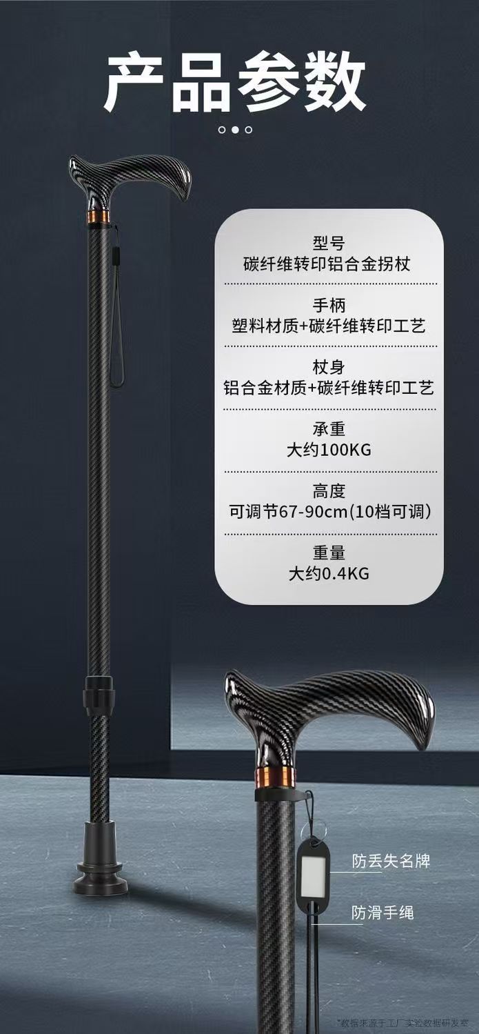 カーボンファイバー製杖、滑り止め、高齢者向け、耐荷重100kg、リハビリ補助、転倒防止、立ち上がり補助、伸縮式、越境販売