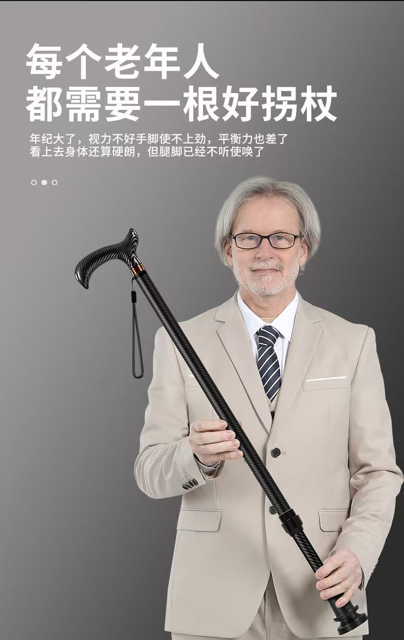 碳纤维四脚拐杖防滑轻便康复走路老年人专用防摔倒拐棍登山杖徒步