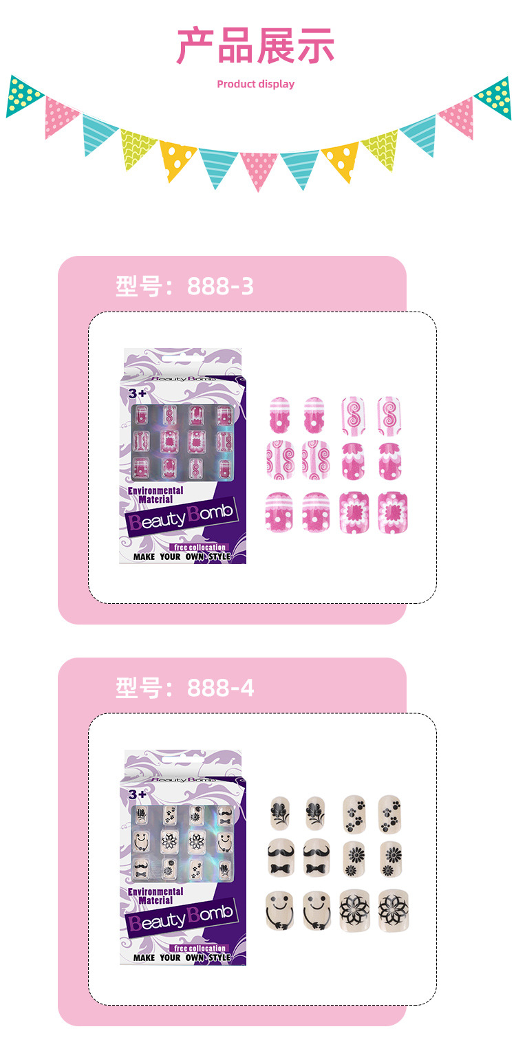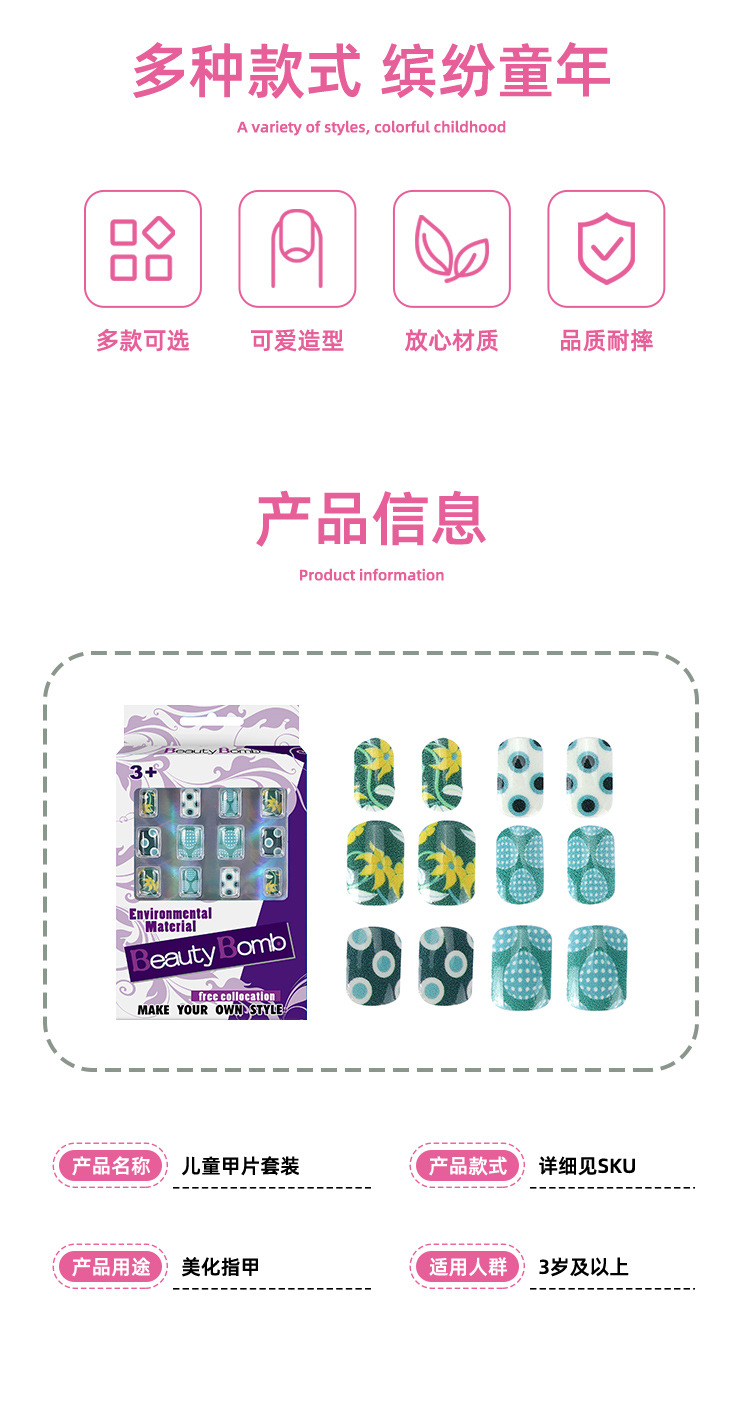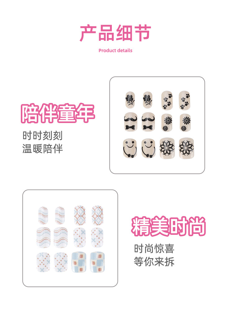 国境を越えた子供ファッションの偽爪には、取り外し可能なネイルシールが貼られています。