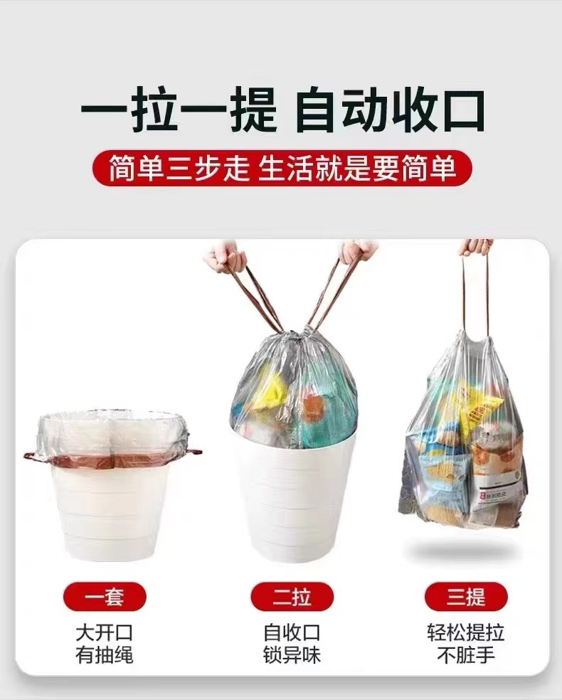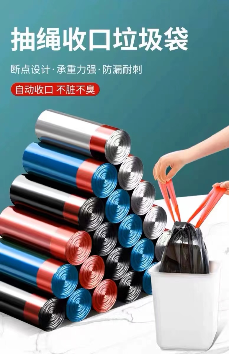 抽绳垃圾袋加厚不脏手自动收口垃圾袋手提式塑料袋家用厨房垃圾袋