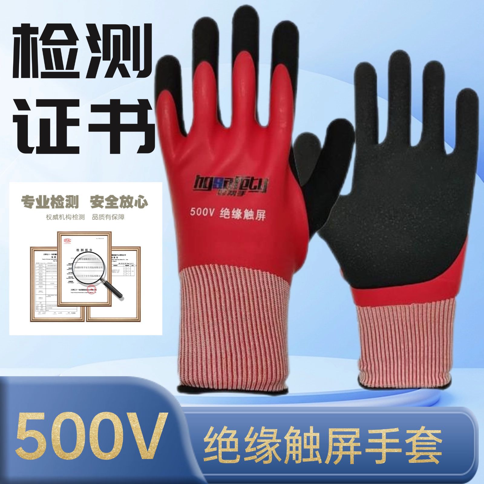 赤色500v全浸絶縁タッチパネル冬手袋電気作業専用絶縁手袋卸売り源工場