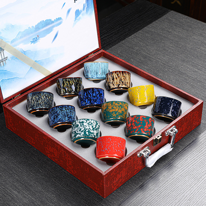 窯は杯の陶磁器の工夫のお茶の杯のセットの小さい茶碗の品の茗杯のお茶の杯の多彩な12つの家庭の贈り物を作ります。
