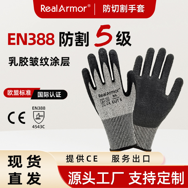 CE认证EN388防割5级HPPE材质涂层D级玻璃厂防切割手套工业级防护