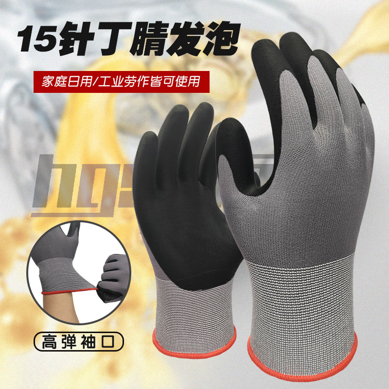 15針ナイロン手袋、産業用保護、滑り止め、耐摩耗性、耐油性、ニトリル発泡、安全、労働保護、耐油性、多目的