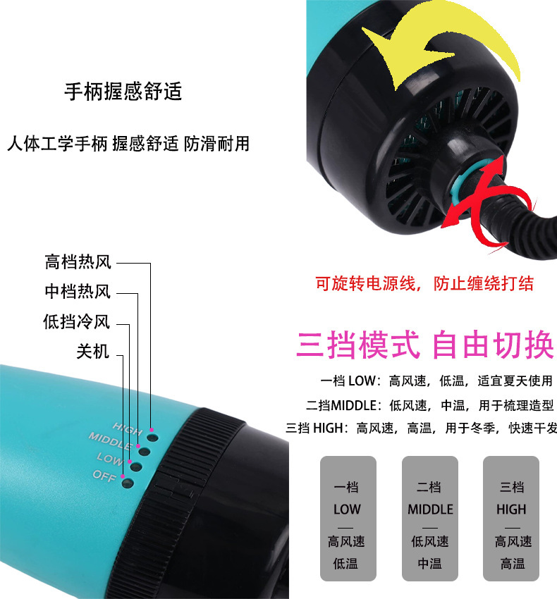 源头工厂亚马逊跨境多功能热风梳直发梳吹风梳卷发器直发梳吹风机