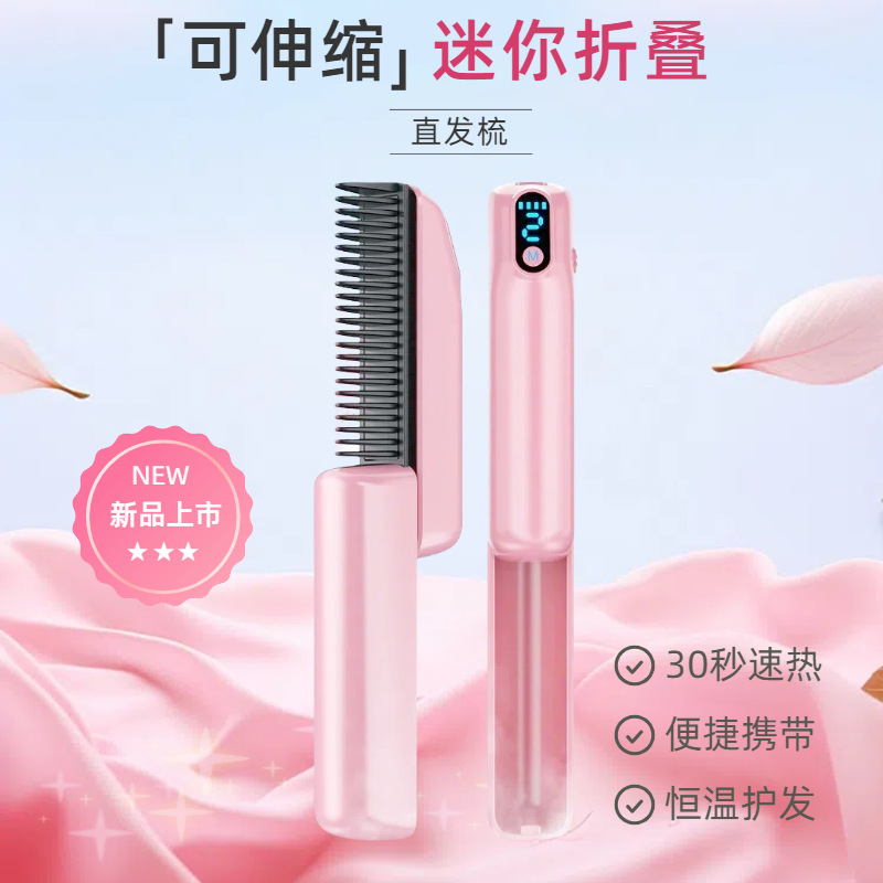 新型折りたたみ式携帯型マイナスイオン直髪ヘアアイロン器ふんわりとした怠惰な神器ミニ伸縮可能なストレート櫛