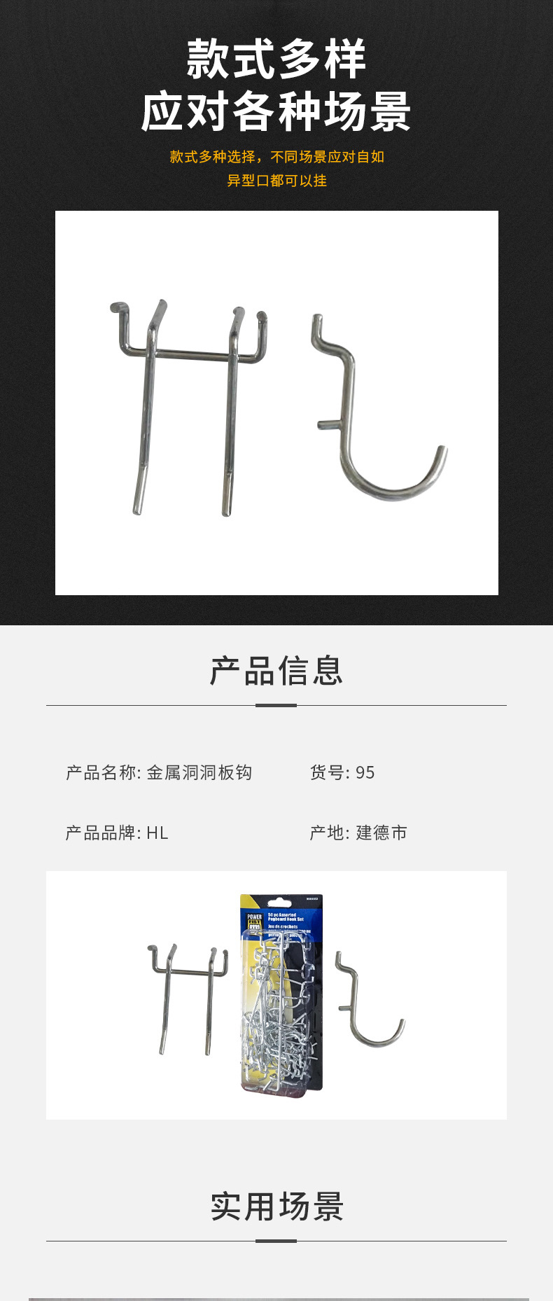114件套 洞洞板挂钩洞洞板金属钩工具挂钩 可整理各种钉板工具