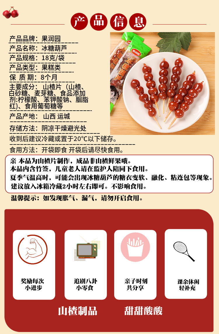 果潤園氷糖瓢箪約18g/袋糖サンザシ球砂糖漬け餅無核山里紅レトロ零卸売り