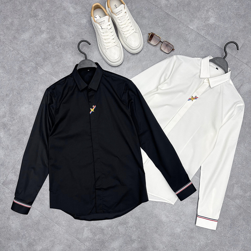 メンズヨーロッパ駅長袖シャツビジネス修身ハチドリ刺繍シャツ白黒シンプルシャツb 1caf 1e 94