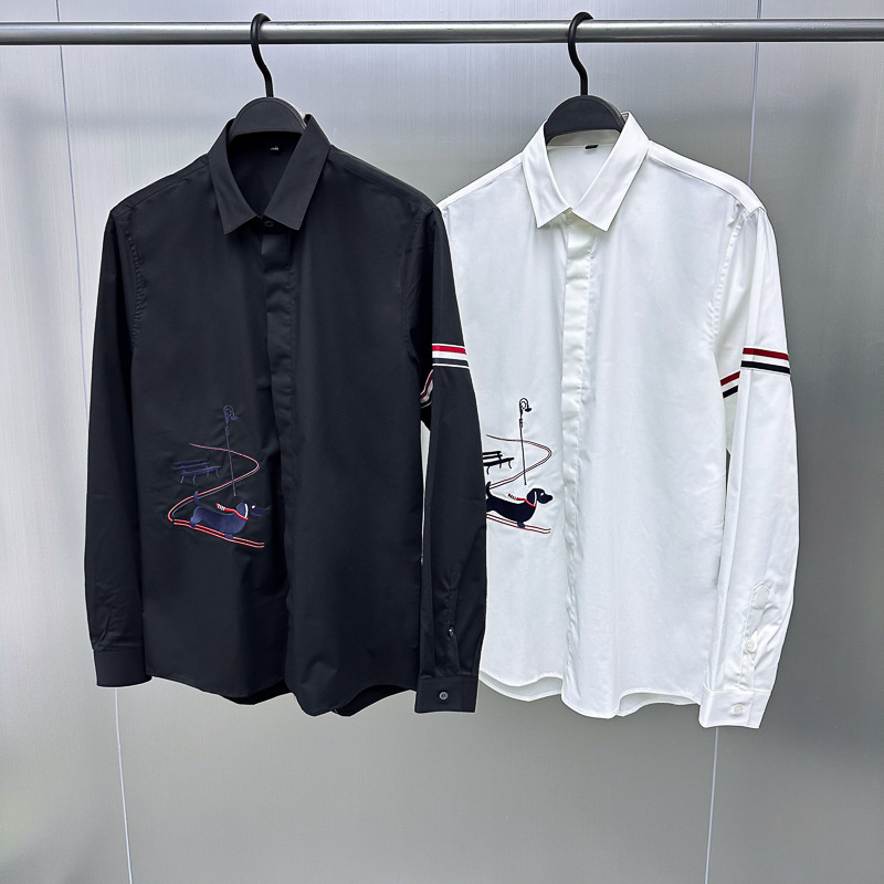 メンズヨーロッパ駅長袖シャツビジネス修身子犬刺繍シャツシンプルカジュアルシャツb 1cae 3x93
