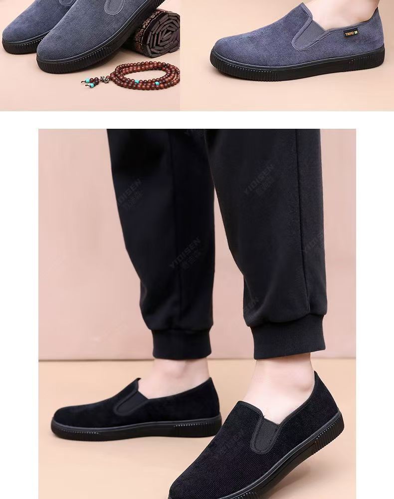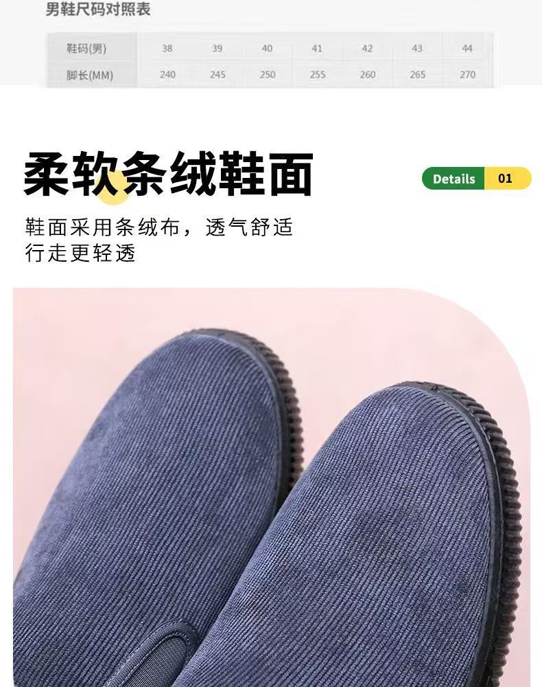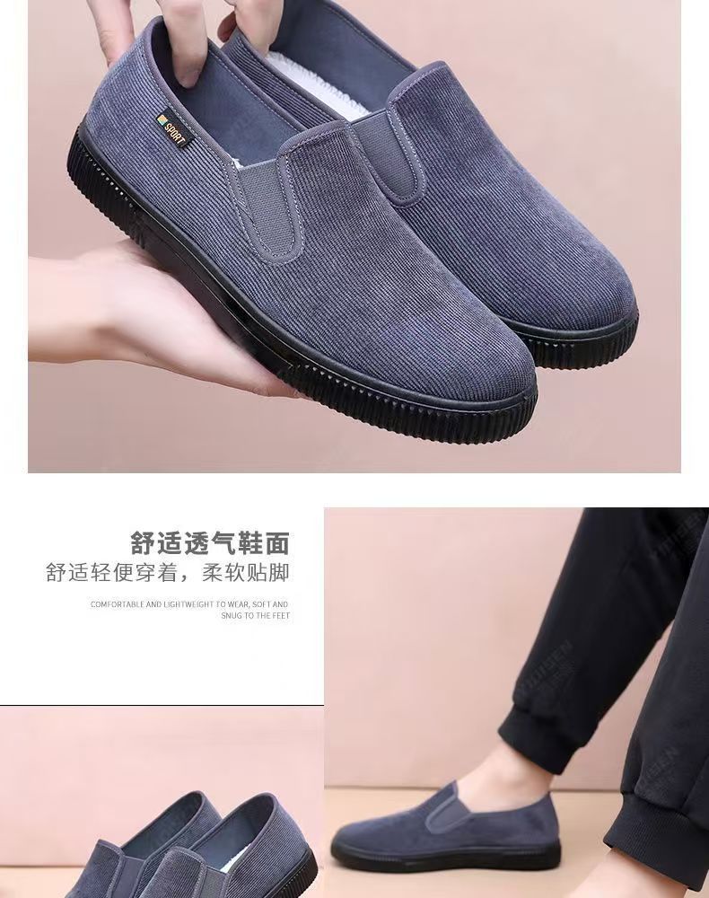 新款冬季加绒老北京条绒兔毛加绒棉鞋轻便一脚蹬休闲老人爸爸棉鞋