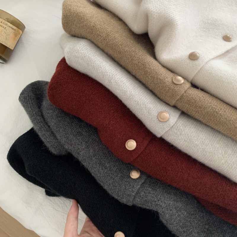 乳系の優しいショートニットのカーディガン女性の春秋気質の中にセーターのコートを着て、年齢を減らします。
