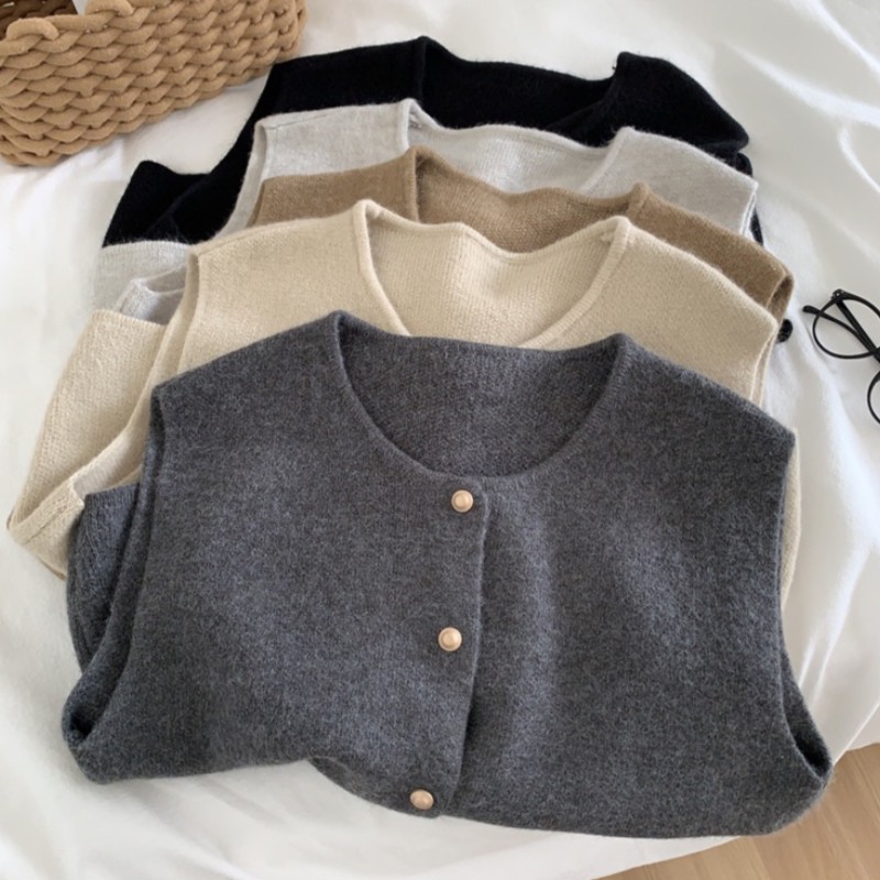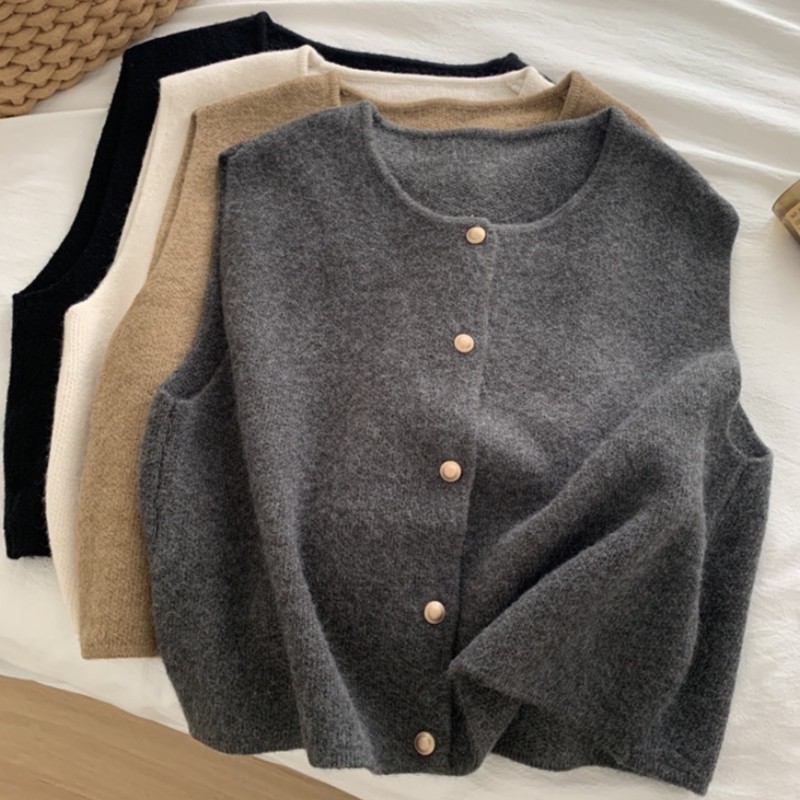 1681 文学レトロな気質小さなゴールドボタンニットベストルーズショートスタイルスリムレイヤードセータートップ多用途