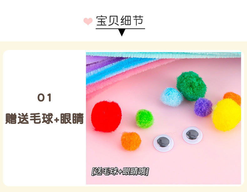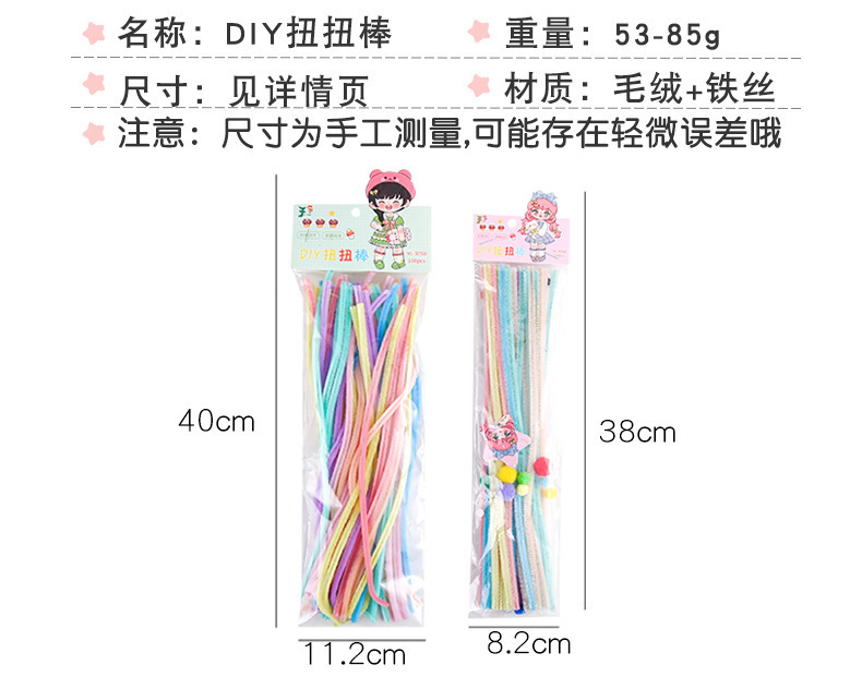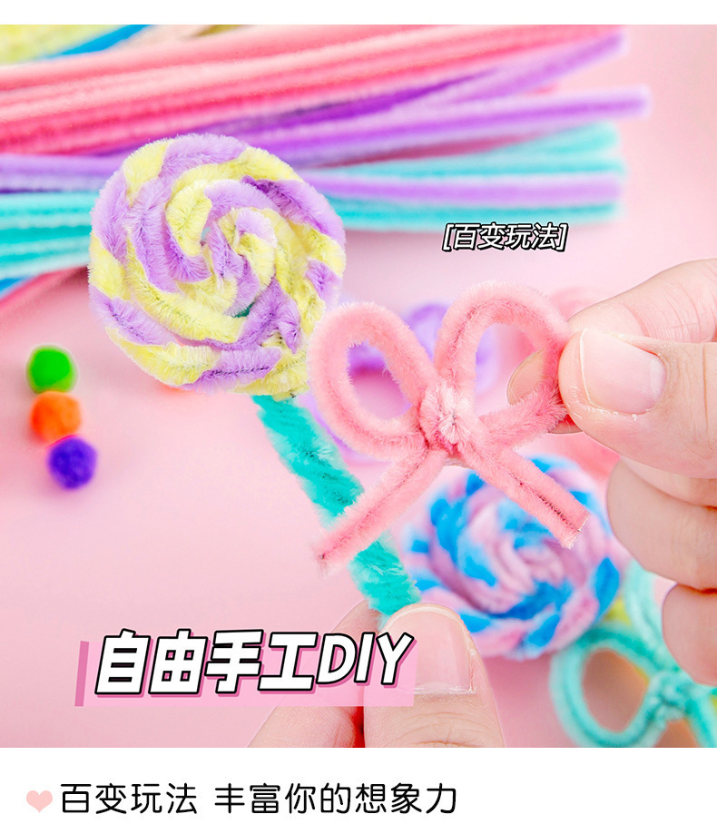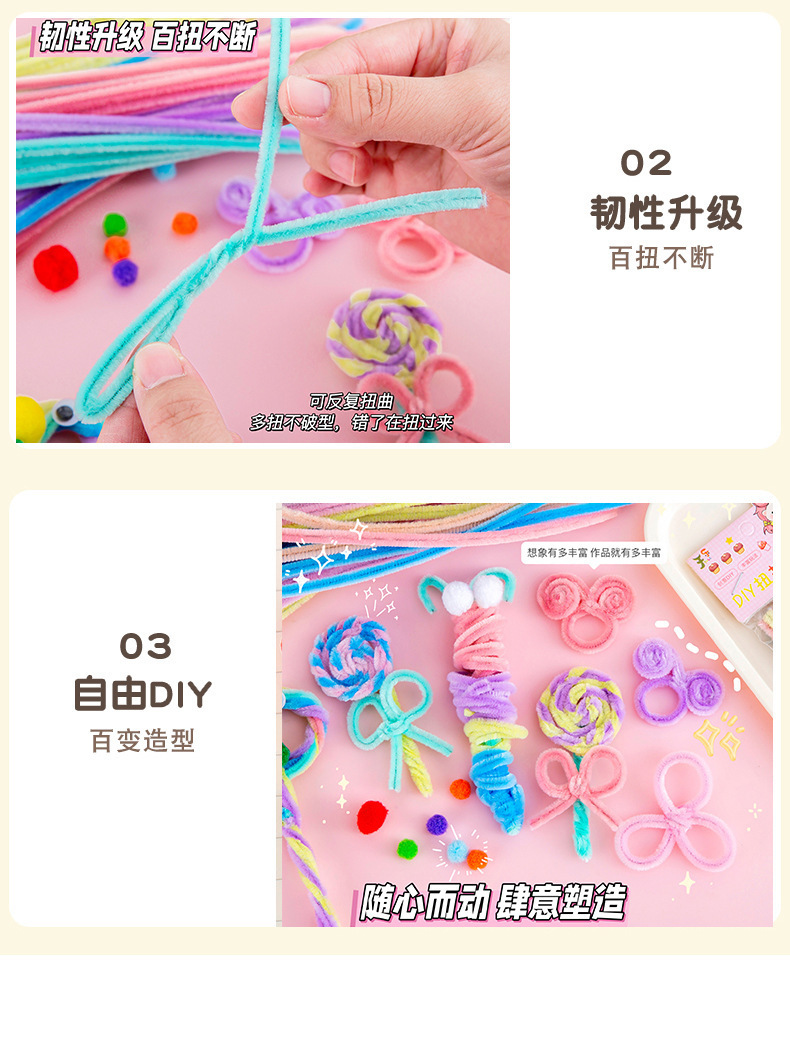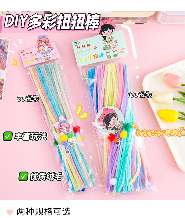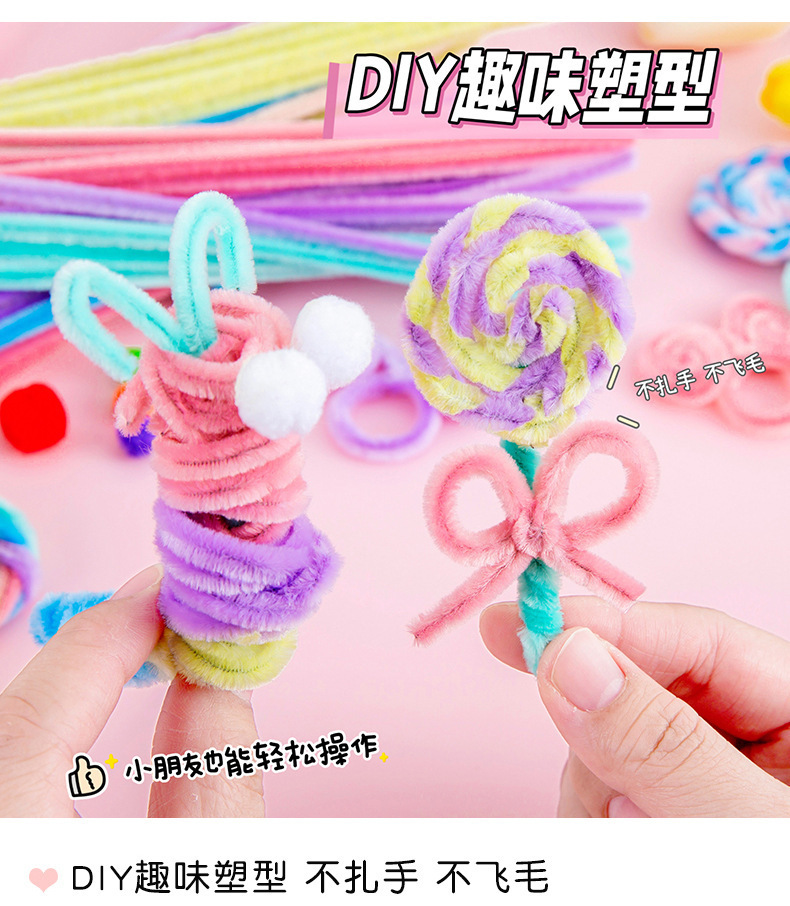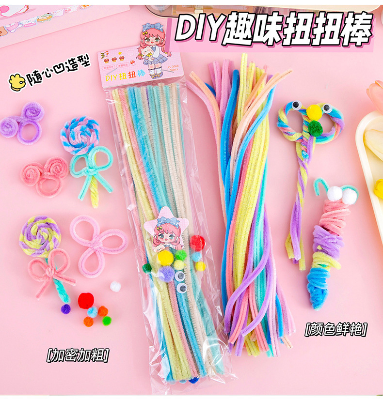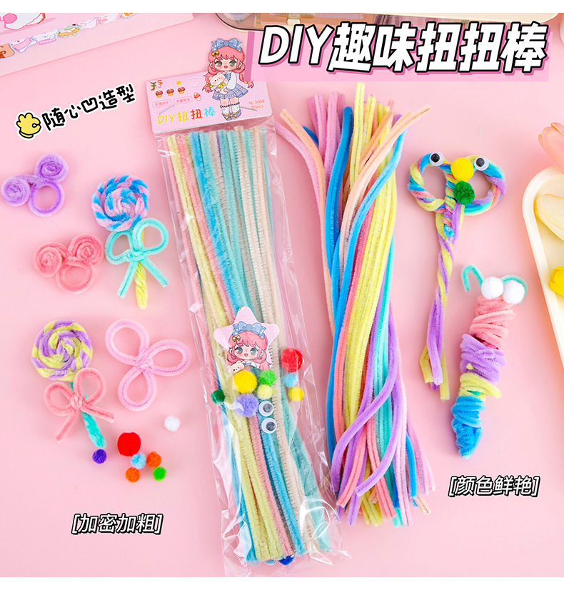 【厂家品牌直销】呦呦虎扭扭棒批发毛绒条DIY超加密毛根儿童手工