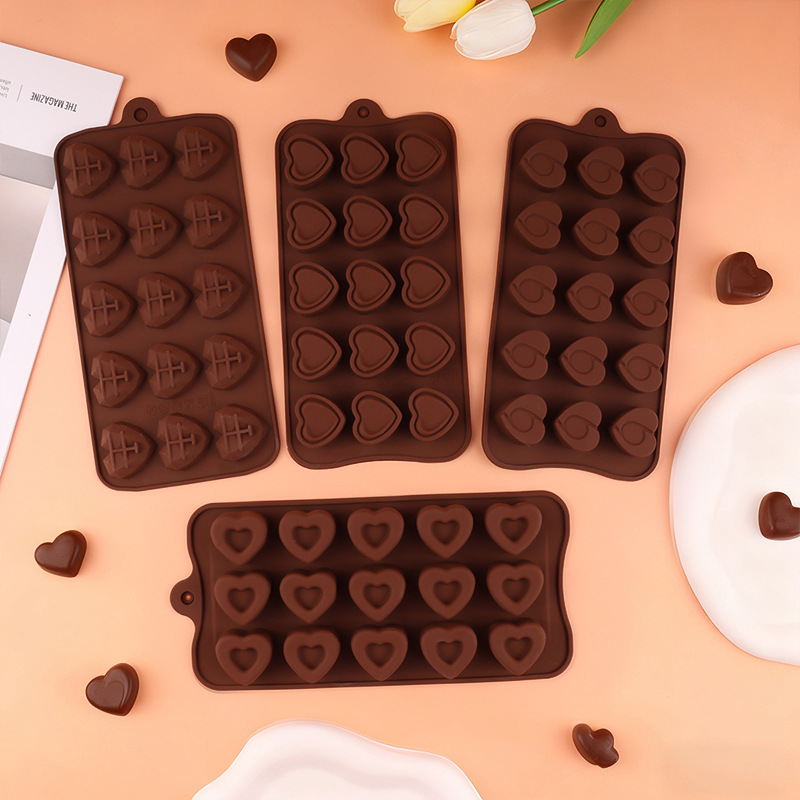 15连爱心巧克力模具心形食品硅胶蛋糕模具易脱模烘焙蛋糕慕斯模具
