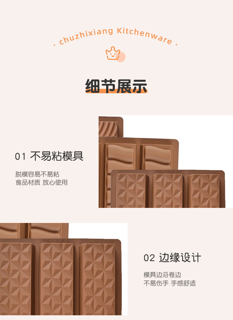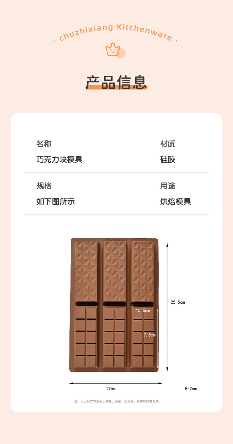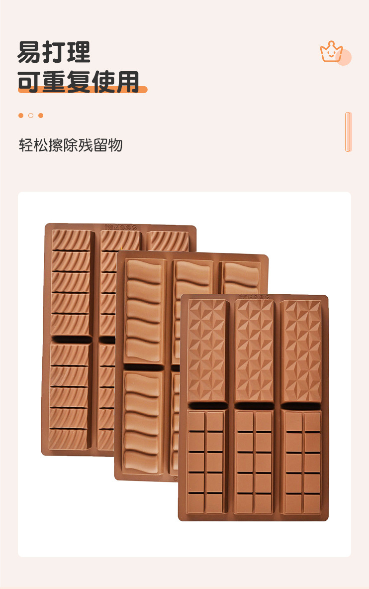 工場卸売長方形チョコレート型アマゾン越境キッチンベーキングツールシリコンチョコレート型