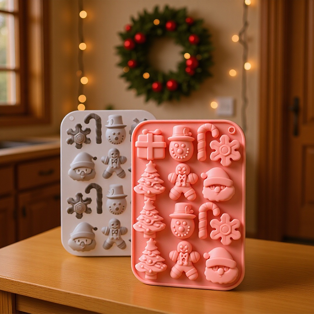 跨境14连圣诞模具硅胶模具圣诞树姜饼人雪花圣诞节饼干糖果模具