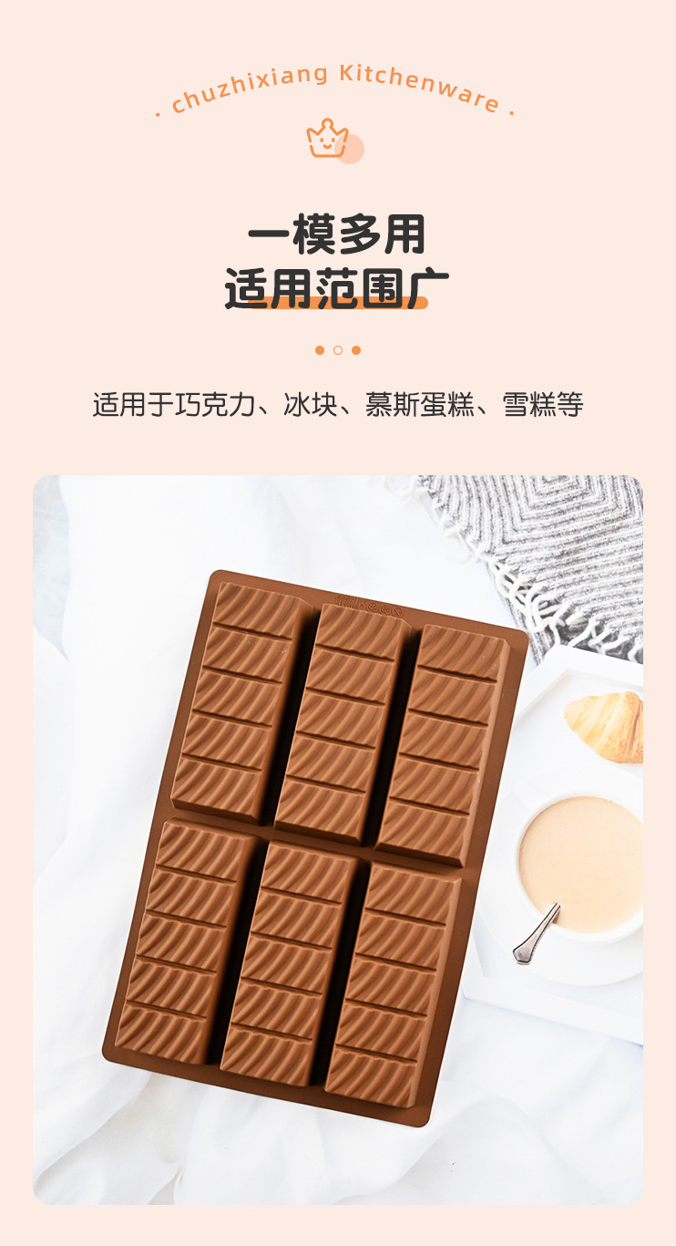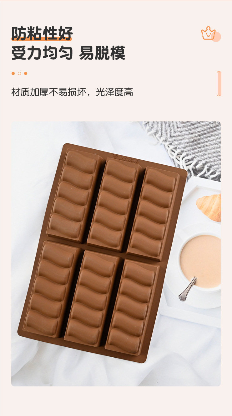 人気モデル6連続チョコレート金型食品級ゼリーエネルギー棒ワッフルクッキーシリコン焙煎金型