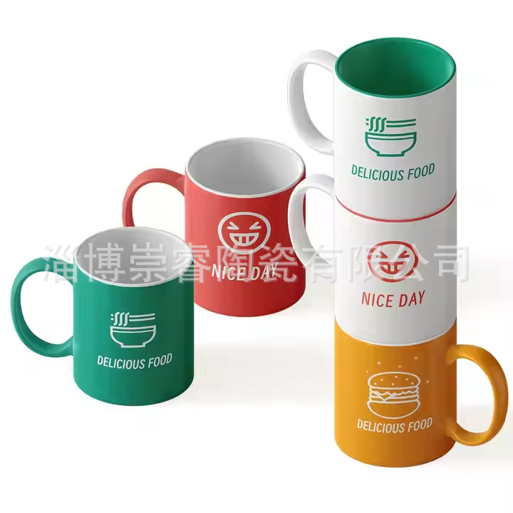 カラー陶磁器カップクロスボーダー国際カップオーダー商標柄変色カップカスタムロゴストレート11オンスマグカップ