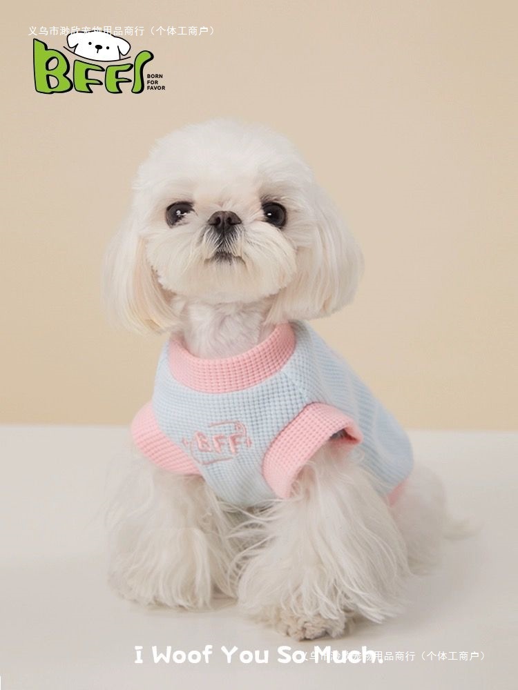 ぼんやりしているペット用品のネットの赤いペットの犬の服のマカロンは色のワッフルのベストの春夏の新型の馬の挟みにぶつかります。