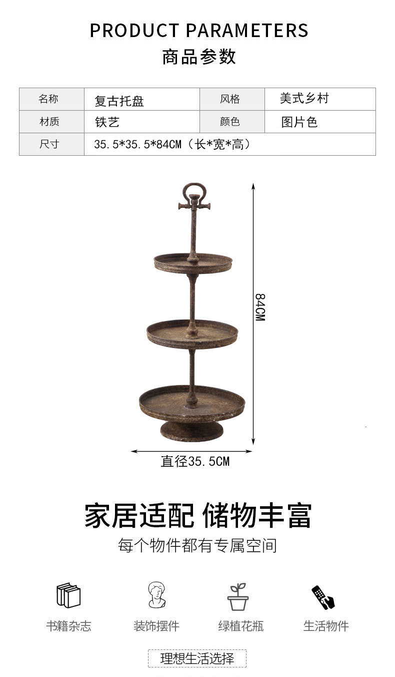 レトロ旧多層創意パレットins風鉄芸果物皿花屋装飾棚甜店皿棚