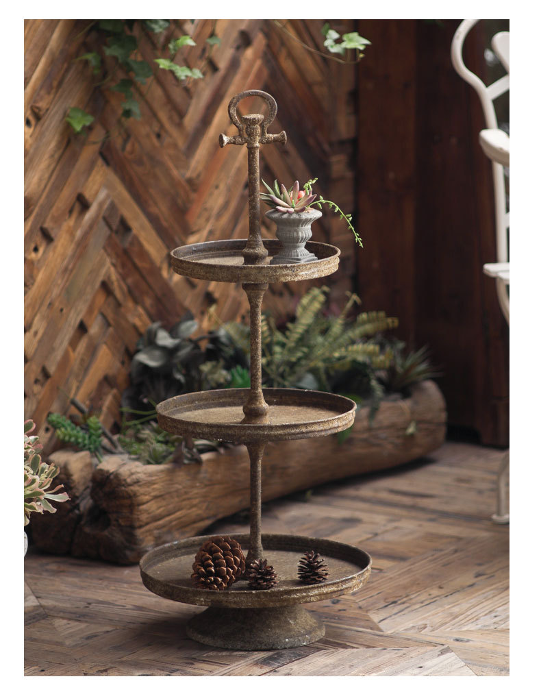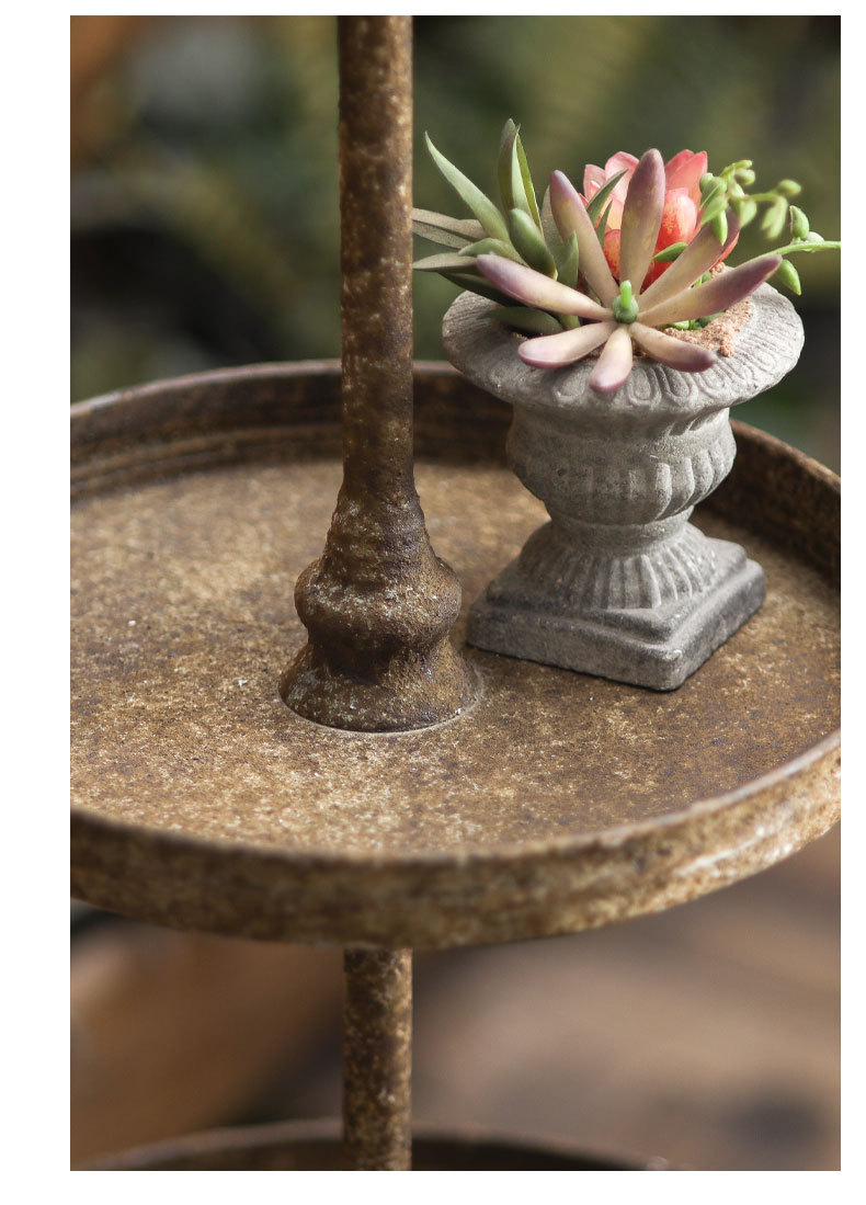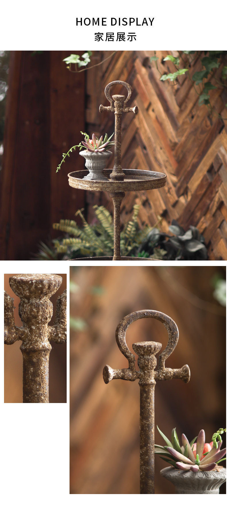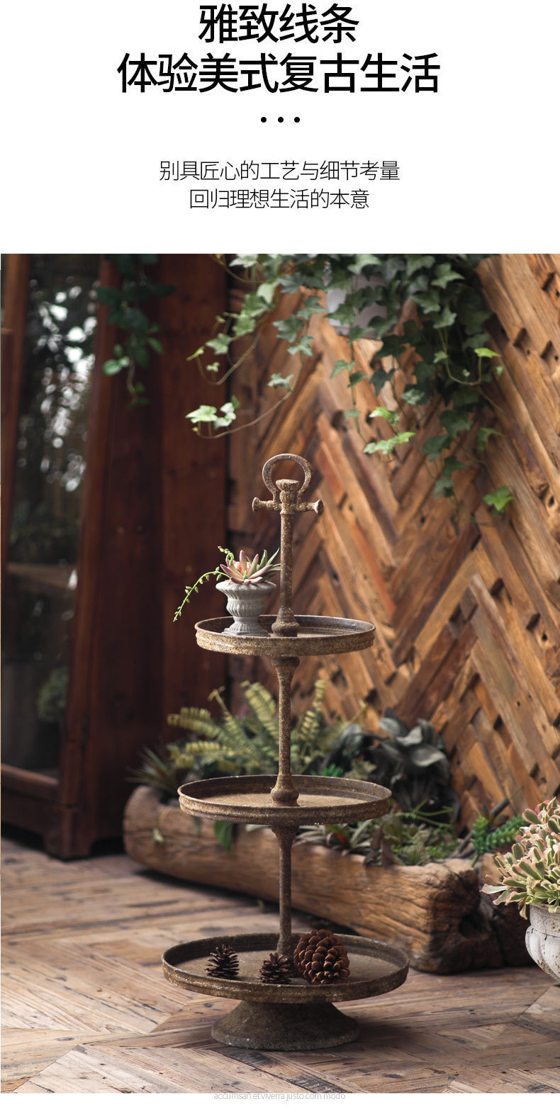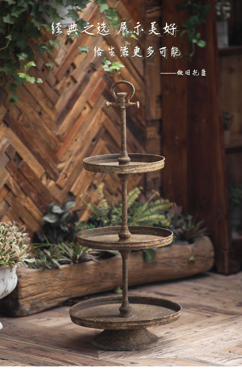 欧式复古做旧落地多层铁艺托盘 阳台花园装饰品 民宿酒店创意摆件