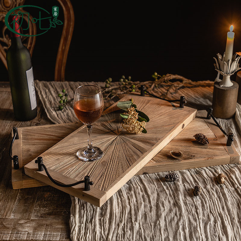 対外貿易の金属の工芸品のトレーの茶屋の囲炉裏はお茶の果物のお茶の果物の皿のアメリカの復古の彫刻の装飾品を煮ます。