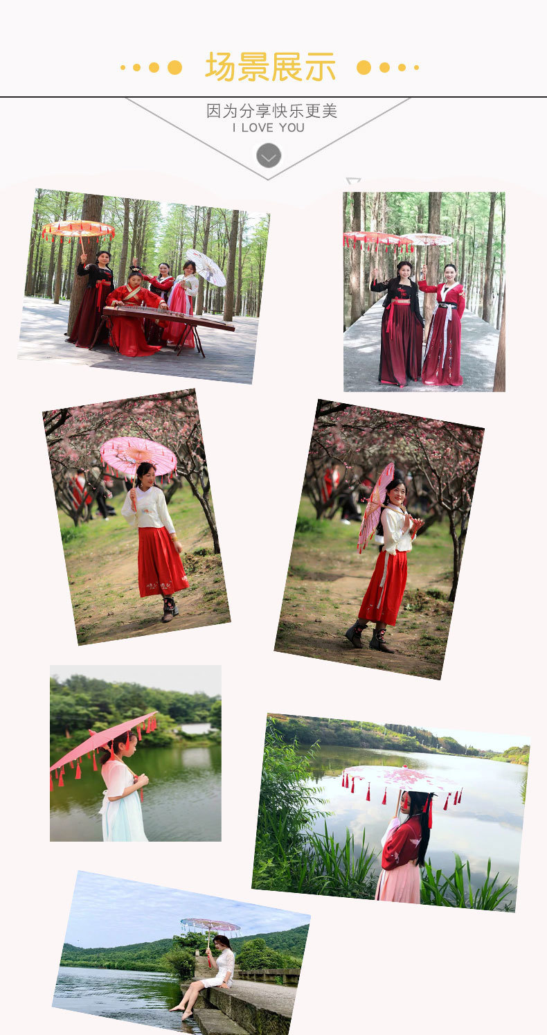 江南の漢服の女性の油紙の傘のフリンジの写真撮影の道具のダンスの演出の装飾の中で古風な服装のショーのチャイナドレスの傘の工場