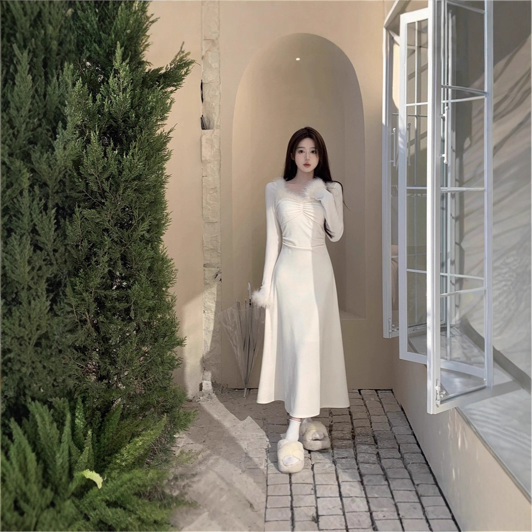 大码女装2025秋季新款法式甜美修身显瘦气质长款连衣裙