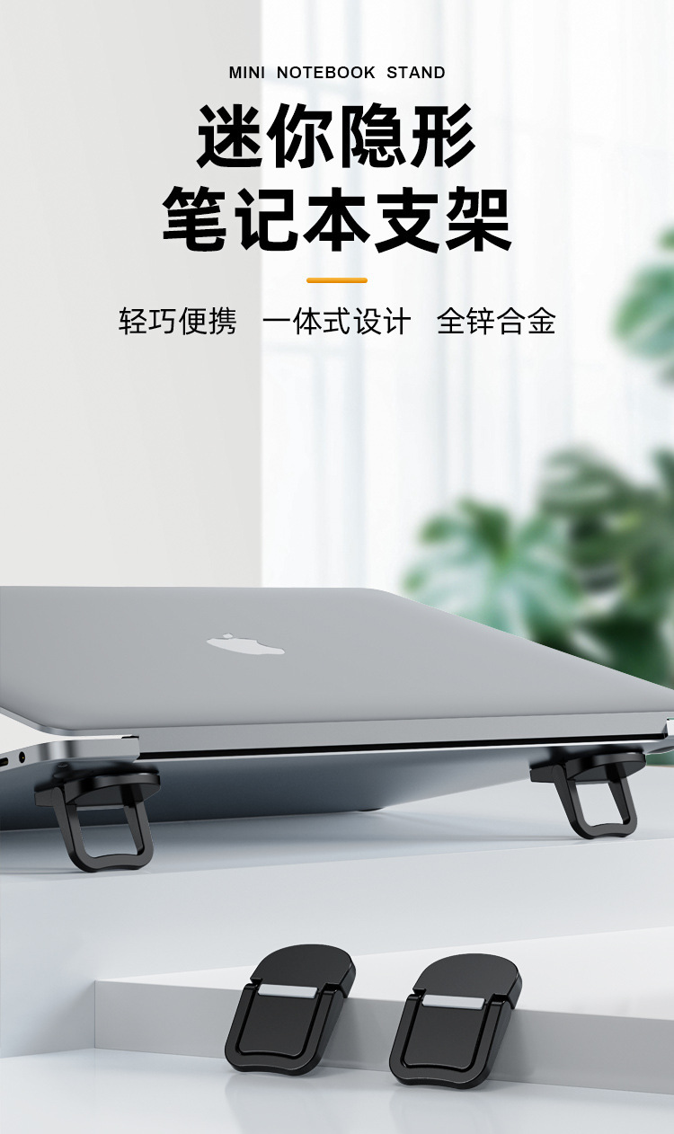 锌合金笔记本支架隐形增高迷你超薄便捷折叠式键盘电脑垫高散热架