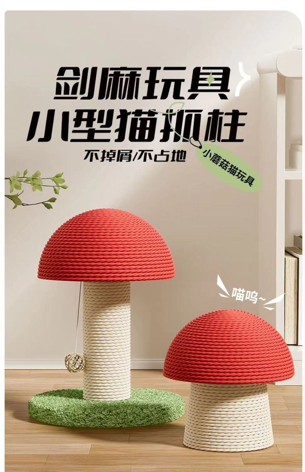 蘑菇猫抓板耐磨不屑猫爬架红伞伞蘑菇猫玩具猫抓柱剑麻立式小型